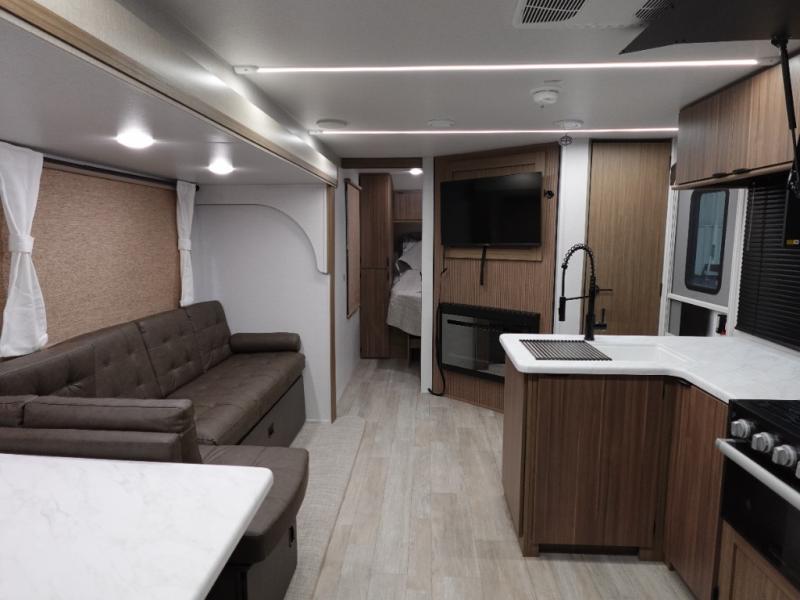 The Wildwood travel trailers are packed with hassle-free camping amenities! There are a variety of floorplans to choose from between three different regions. The heated and enclosed Accessibelly will help protect against the elements and debris during transport, and the exterior retro/metal redesign is sure to be eye-catching! There are stylish roller shades inside, along with updated backsplash, elegant curtain rods and curtains, plus many more interior comforts! Choose a Wildwood travel trailer today for quality and value!