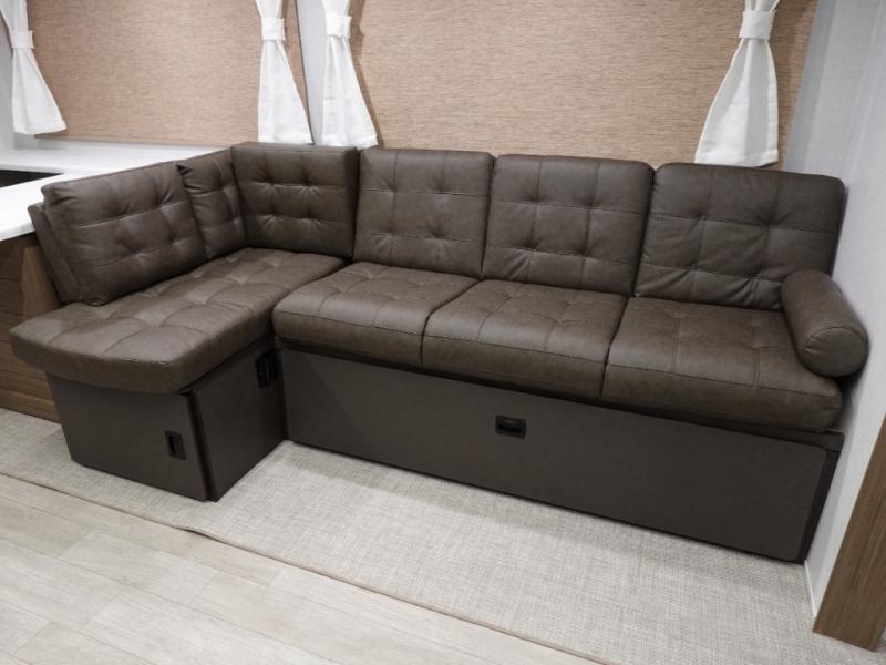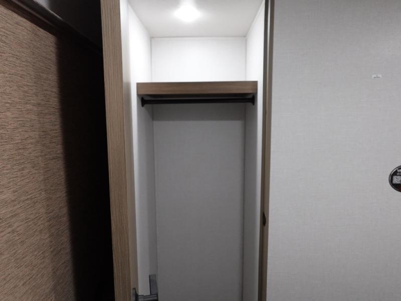 This Wildwood travel trailer is perfect for a larger group and family since it includes double-size bunks for the kids or friends, and a front private bedroom for you to enjoy. You'll find a Versa Lounge in the large slide out, along with a Versa Flex table, and the panoramic windows will provide great views. This model includes two entry doors, one leading into the main living area and another leading into the rear corner bath for convenience. Bring along all of your camping gear in the pass-through storage, and the interior walk-in pantry can hold all the snacks. There is an exterior camp kitchen beneath an 18' power awning with adjustable legs to keep you protected from the hot summer sun or rain. This also provides more outdoor living space for your family to enjoy.