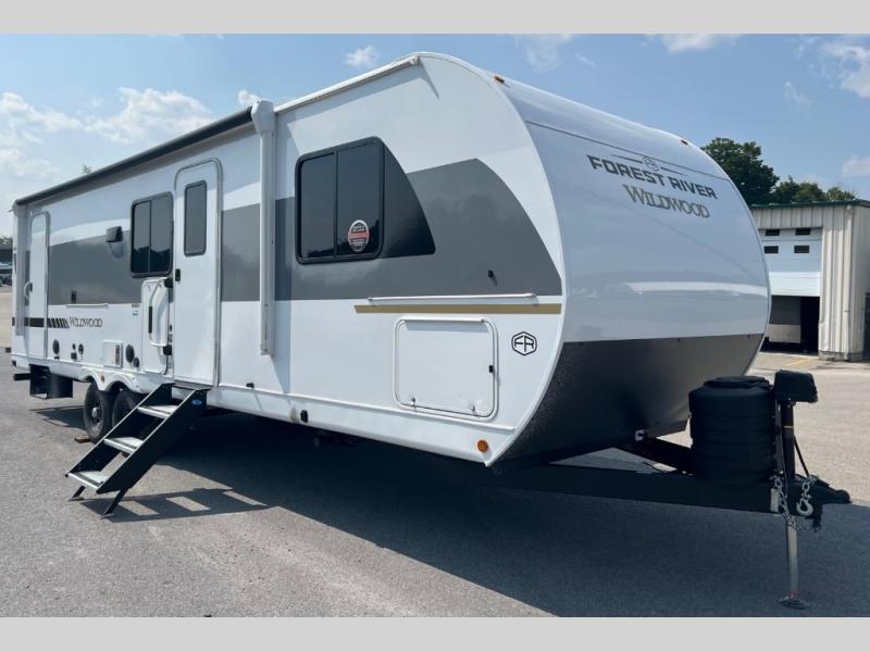 Enjoy years and years of memories with any one of these Forest River Wildwood travel trailers! They are built with a Dicor PVC roof membrane, a powder coated I-beam frame, and an aerodynamic front radius profile for an easier tow. The triple seal slide out system prevents water from seeping inside and keeps it outside where it belongs. The Best In Class Value Package includes upgraded designer furniture, seamless countertops with no T-mold, and two zone residential soundbars with FM, Bluetooth, HDMI and USB. You will also appreciate the heated and enclosed Accessi-Belly with removable underbelly panels, the power tongue jack with an LED light, and the designated CPAP storage. Some new upgraded features include: an upgraded slide-out fascia, a Versa-Tilt bed, an upgraded shower head, and a 60K BTU tankless water heater, and so much more!