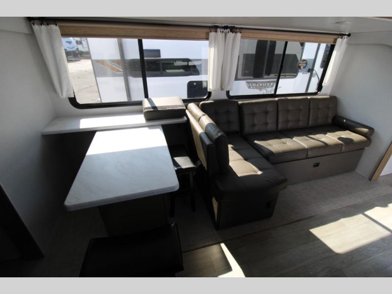 The Wildwood travel trailers are packed with hassle-free camping amenities! There are a variety of floorplans to choose from between three different regions. The heated and enclosed Accessibelly will help protect against the elements and debris during transport, and the fiberglass exterior is sure to be eye-catching! There are stylish roller shades inside, along with updated backsplash, elegant curtain rods and curtains, plus many more interior comforts! Choose a Wildwood travel trailer today for quality and value!