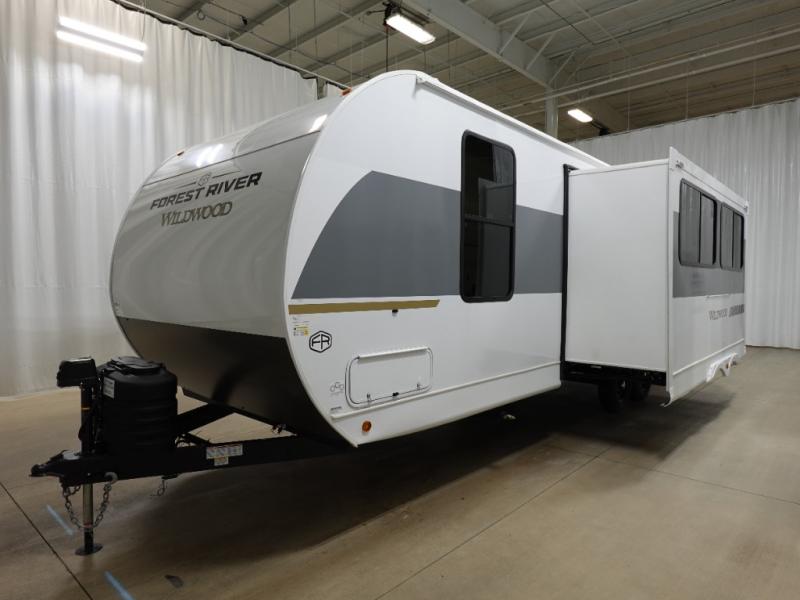 Enjoy years and years of memories with any one of these Forest River Wildwood travel trailers! They are built with a Dicor PVC roof membrane, a powder coated I-beam frame, and an aerodynamic front radius profile for an easier tow. The triple seal slide out system prevents water from seeping inside and keeps it outside where it belongs. The Best In Class Value Package includes upgraded designer furniture, seamless countertops with no T-mold, and two zone residential soundbars with FM, Bluetooth, HDMI and USB. You will also appreciate the heated and enclosed Accessi-Belly with removable underbelly panels, the power tongue jack with an LED light, and the designated CPAP storage. Some new upgraded features include: an upgraded slide-out fascia, a Versa-Tilt bed, an upgraded shower head, and a 60K BTU tankless water heater, and so much more!