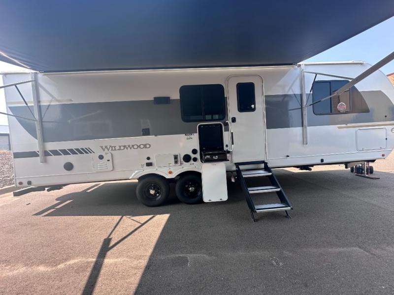 Enjoy years and years of memories with any one of these Forest River Wildwood travel trailers! They are built with a Dicor PVC roof membrane, a powder coated I-beam frame, and an aerodynamic front radius profile for an easier tow. The triple seal slide out system prevents water from seeping inside and keeps it outside where it belongs. The Best In Class Value Package includes upgraded designer furniture, seamless countertops with no T-mold, and two zone residential soundbars with FM, Bluetooth, HDMI and USB. You will also appreciate the heated and enclosed Accessi-Belly with removable underbelly panels, the power tongue jack with an LED light, and the designated CPAP storage. Some new upgraded features include: an upgraded slide-out fascia, a Versa-Tilt bed, an upgraded shower head, and a 60K BTU tankless water heater, and so much more!