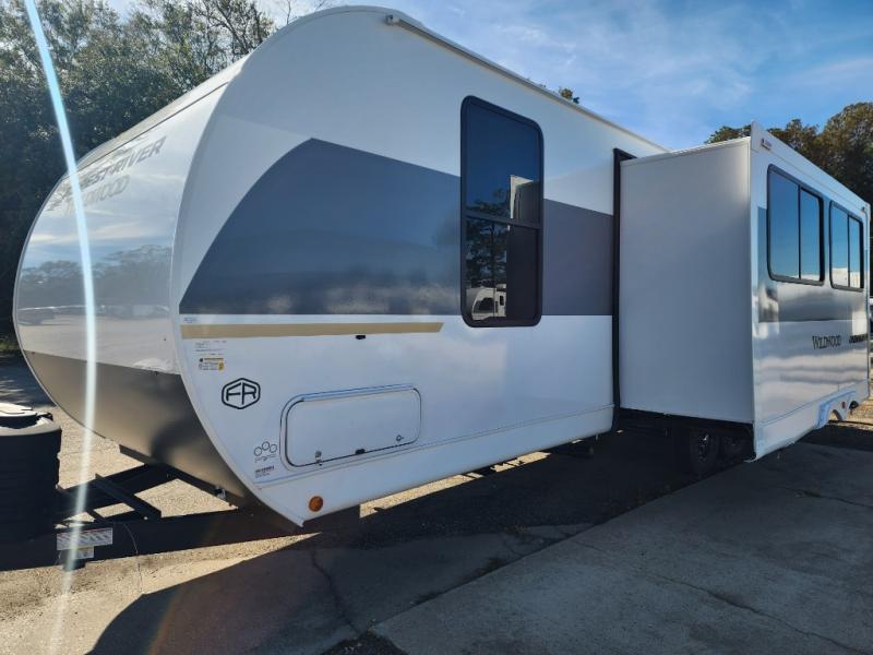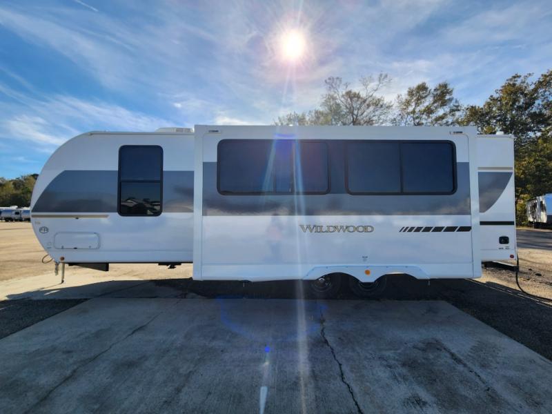 The Wildwood travel trailers are packed with hassle-free camping amenities! There are a variety of floorplans to choose from between three different regions. The heated and enclosed Accessibelly will help protect against the elements and debris during transport, and the fiberglass exterior is sure to be eye-catching! There are stylish roller shades inside, along with updated backsplash, elegant curtain rods and curtains, plus many more interior comforts! Choose a Wildwood travel trailer today for quality and value!