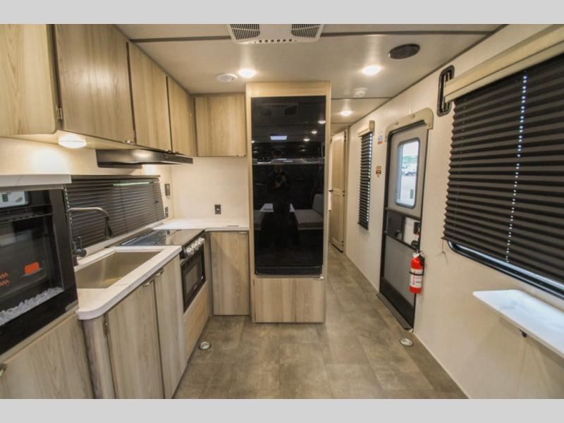 Take your adventures to the max in this MAX toy hauler with more space and features! Unload your dirt bikes from the 14' garage, then convert this space to the 1,500 lb. capacity patio. This model includes two sofa sleepers with a table to dine and let guests sleep over. The main living area will feel more like home with a fireplace, and the full kitchen will allow you to prepare meals for your whole group. If you enjoy cooking outdoors then you will love the outdoor griddle and refrigerator, plus there is an 18' power awning here for shade. After dinner is cleaned up, head to the front private bedroom for a great night's rest and plan to do it all over again tomorrow!