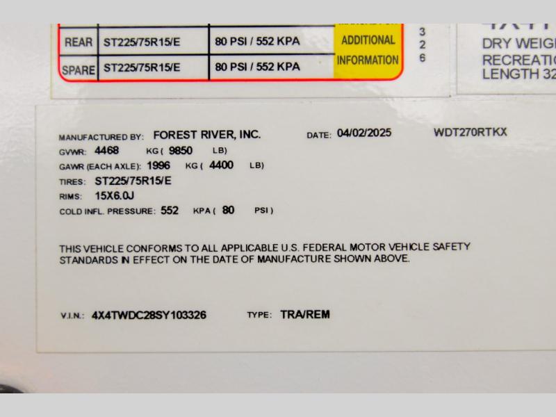 New 2025 Forest River RV Wildwood 270RTKX Toy Hauler Travel Trailer
