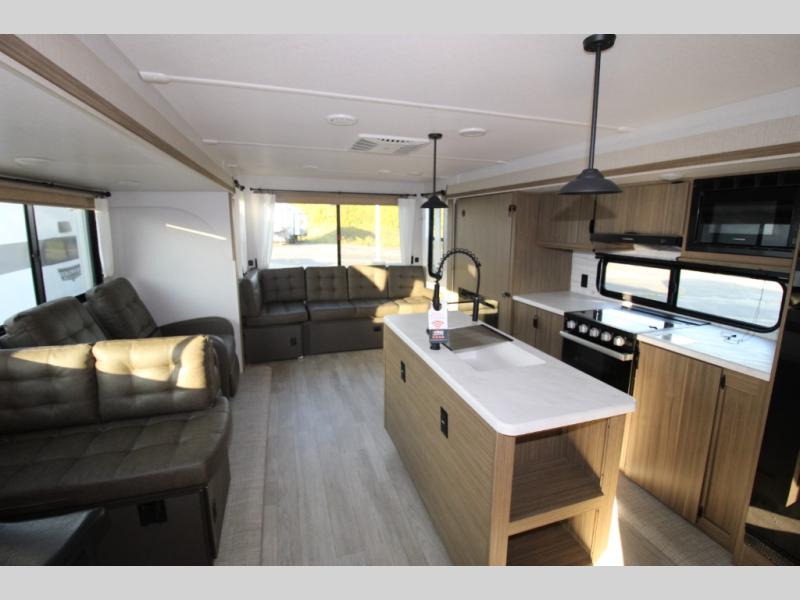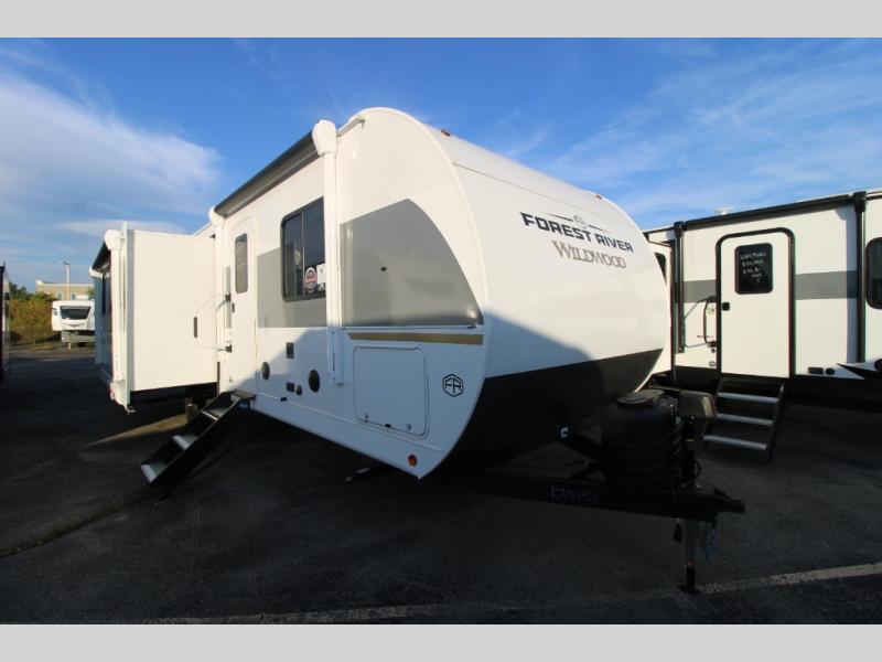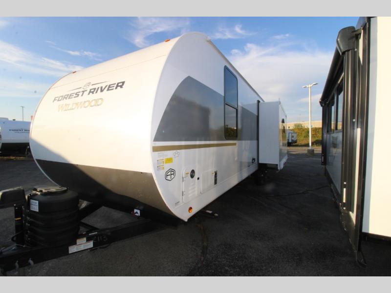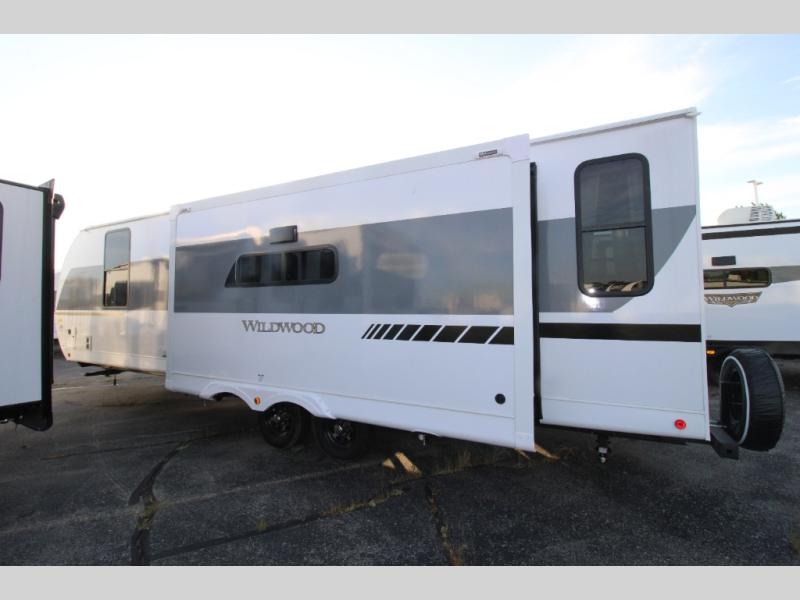 Enjoy years and years of memories with any one of these Forest River Wildwood travel trailers! They are built with a Dicor PVC roof membrane, a powder coated I-beam frame, and an aerodynamic front radius profile for an easier tow. The triple seal slide out system prevents water from seeping inside and keeps it outside where it belongs. The Best In Class Value Package includes upgraded designer furniture, seamless countertops with no T-mold, and two zone residential soundbars with FM, Bluetooth, HDMI and USB. You will also appreciate the heated and enclosed Accessi-Belly with removable underbelly panels, the power tongue jack with an LED light, and the designated CPAP storage. Some new upgraded features include: an upgraded slide-out fascia, a Versa-Tilt bed, an upgraded shower head, and a 60K BTU tankless water heater, and so much more!