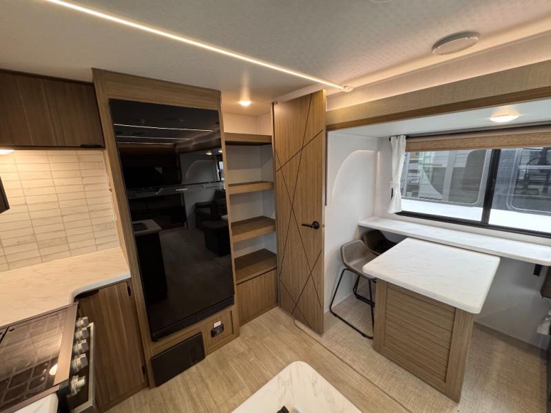 This Wildwood travel trailer is perfect for your family looking for a new adventure. You will enjoy the rear kitchen that includes an oversized refrigerator and cooktop. The Versa-Lounge will provide comfortable seating and sleeping space, and the Versa Flex table gives you a space to dine and work if needed. This unit also includes two lounge chairs so you'll feel right at home! You'll love the full bath in this unit, and the custom king bed with Versa-Tilt in the private bedroom is perfect for a good night's rest.