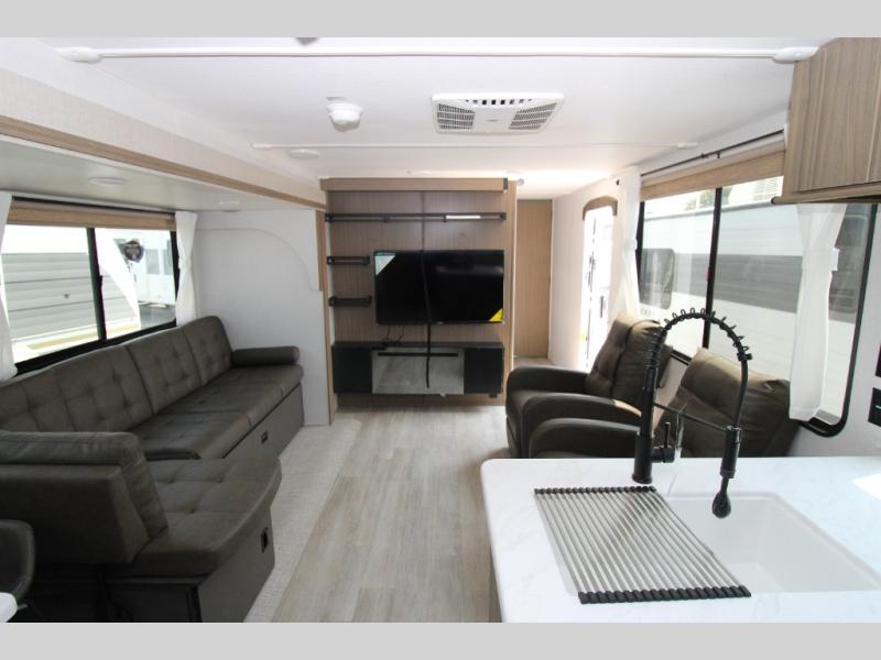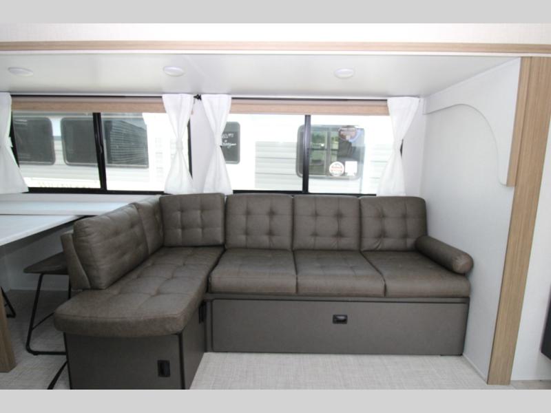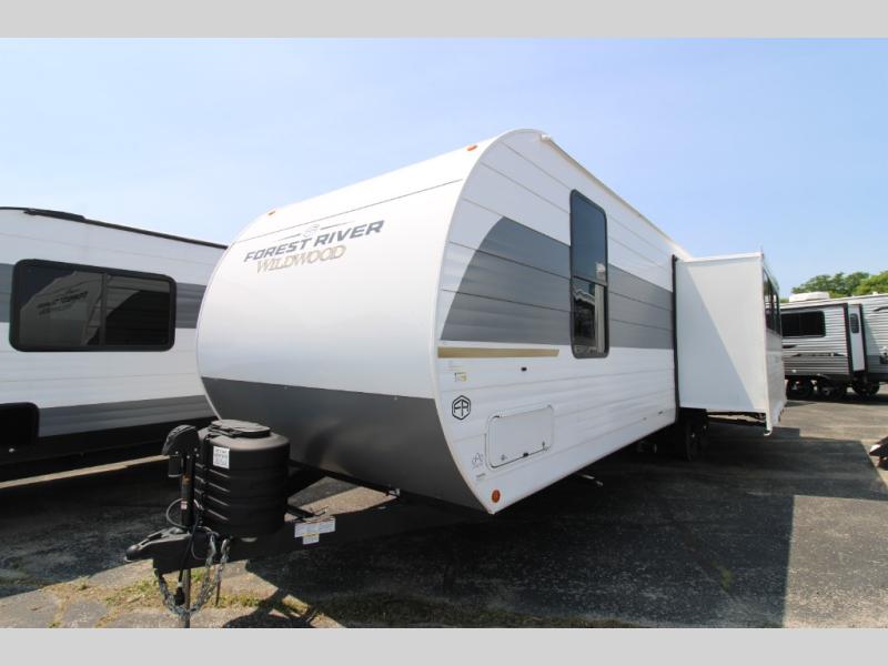 The Wildwood travel trailers are packed with hassle-free camping amenities! There are a variety of floorplans to choose from between three different regions. The heated and enclosed Accessibelly will help protect against the elements and debris during transport, and the exterior retro/metal redesign is sure to be eye-catching! There are stylish roller shades inside, along with updated backsplash, elegant curtain rods and curtains, plus many more interior comforts! Choose a Wildwood travel trailer today for quality and value!