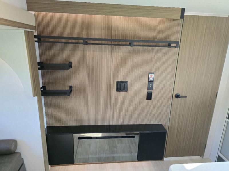 What I liked most: Good amount of exterior storage with larger area in the rear of RV. Power Jacks. Room to walk around master bed. Place for shoes when you walk in. Two double bunks. Surround type speakers in living area. Storage under couch. End cap storage. Bathroom sink separate from toilet area.