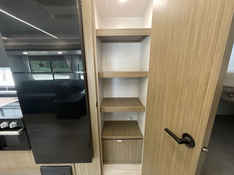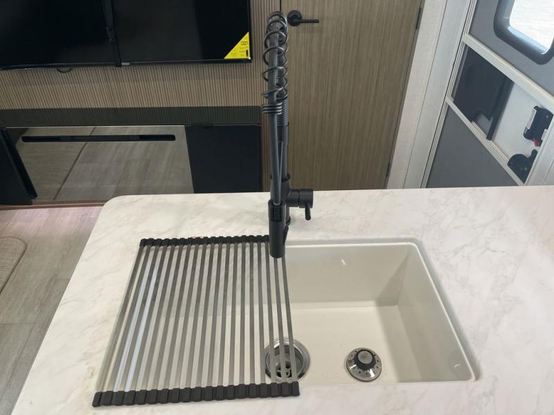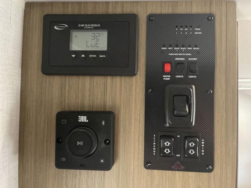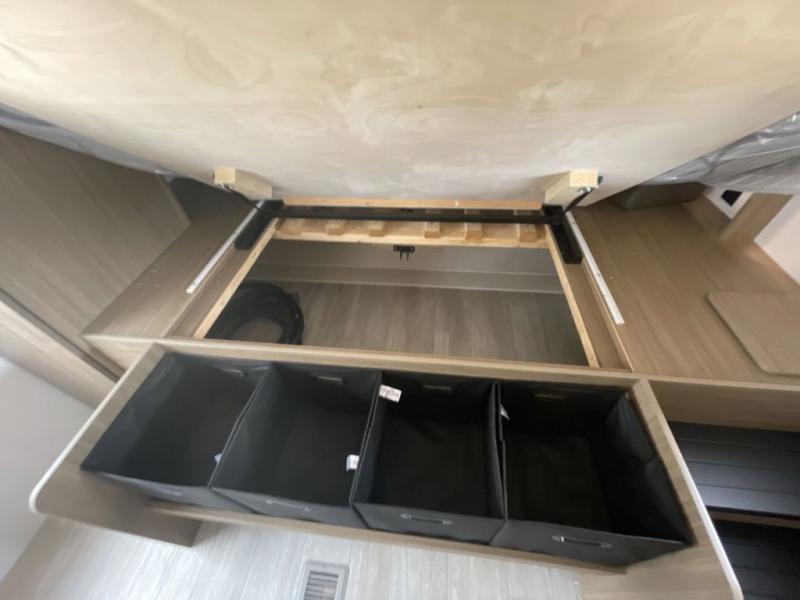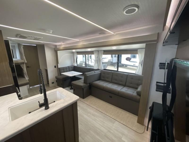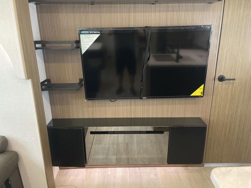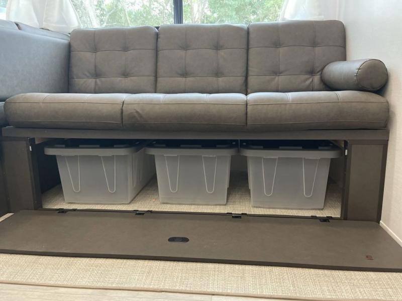 What I liked most: Good amount of exterior storage with larger area in the rear of RV. Power Jacks. Room to walk around master bed. Place for shoes when you walk in. Two double bunks. Surround type speakers in living area. Storage under couch. End cap storage. Bathroom sink separate from toilet area.