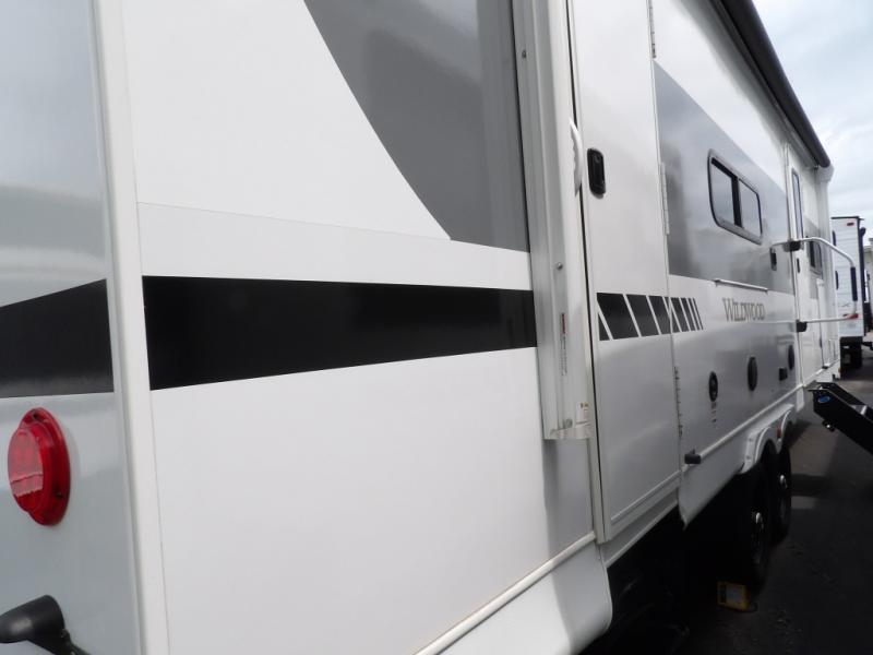 Enjoy years and years of memories with any one of these Forest River Wildwood travel trailers! They are built with a Dicor PVC roof membrane, a powder coated I-beam frame, and an aerodynamic front radius profile for an easier tow. The triple seal slide out system prevents water from seeping inside and keeps it outside where it belongs. The Best In Class Value Package includes upgraded designer furniture, seamless countertops with no T-mold, and two zone residential soundbars with FM, Bluetooth, HDMI and USB. You will also appreciate the heated and enclosed Accessi-Belly with removable underbelly panels, the power tongue jack with an LED light, and the designated CPAP storage. Some new upgraded features include: an upgraded slide-out fascia, a Versa-Tilt bed, an upgraded shower head, and a 60K BTU tankless water heater, and so much more!