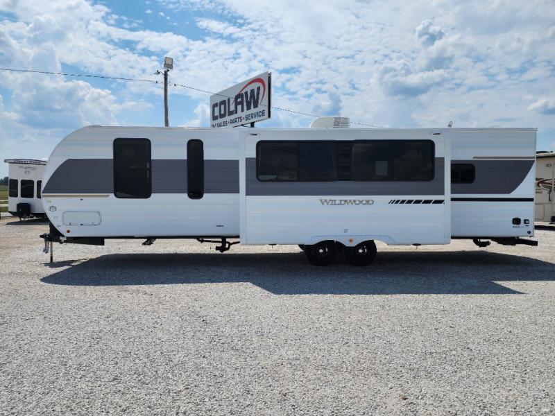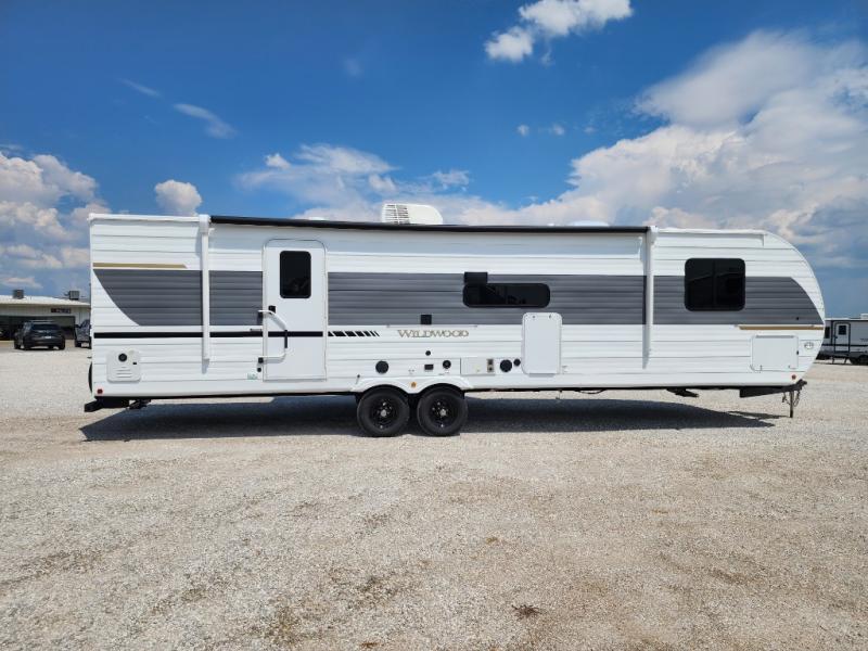 Enjoy years and years of memories with any one of these Forest River Wildwood travel trailers! They are built with a Dicor PVC roof membrane, a powder coated I-beam frame, and an aerodynamic front radius profile for an easier tow. The triple seal slide out system prevents water from seeping inside and keeps it outside where it belongs. The Best In Class Value Package includes upgraded designer furniture, seamless countertops with no T-mold, and two zone residential soundbars with FM, Bluetooth, HDMI and USB. You will also appreciate the heated and enclosed Accessi-Belly with removable underbelly panels, the power tongue jack with an LED light, and the designated CPAP storage. Some new upgraded features include: an upgraded slide-out fascia, a Versa-Tilt bed, an upgraded shower head, and a 60K BTU tankless water heater, and so much more!