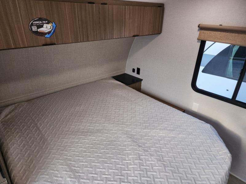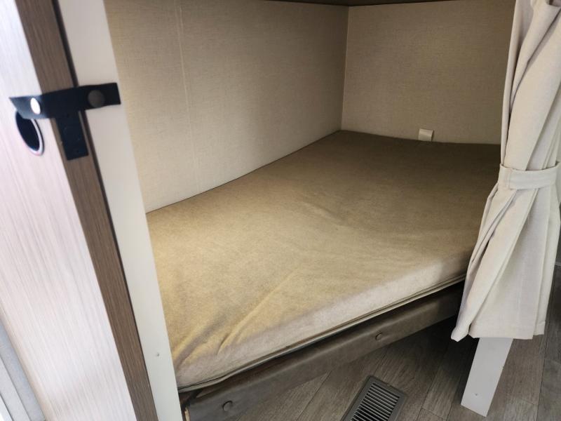 When you're ready to upgrade your RV to a unit with more sleeping space and comfort, choose this Wildwood travel trailer, and you'll never look back. After setting up camp, put out the large slide and prepare lunch indoors or outside at the outdoor kitchen, and the 20' power awning will shade you from the sun. The kids will find all their snacks in the hidden pantry behind the entertainment center, and their drinks in the oversized fridge. The U-shaped dinette is a part of the Versa Lounge, and it will provide comfortable seating space. This model features a rear private bunkhouse with a set of double bed bunks, a desk and a half bath. You will also love the front private bedroom that includes a custom king bed with Versa-Tilt and dual bedside closets with nightstands below.