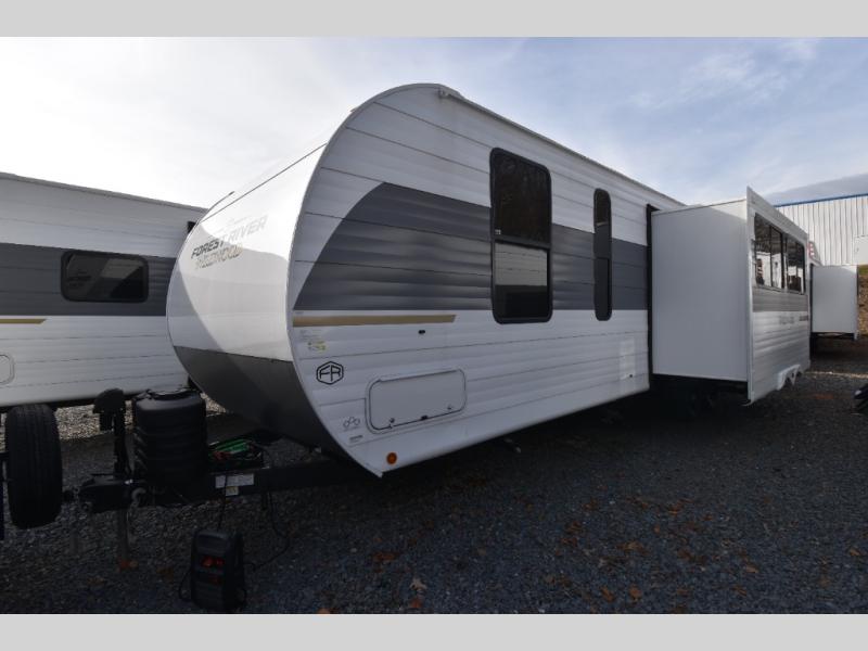 The Wildwood travel trailers are packed with hassle-free camping amenities! There are a variety of floorplans to choose from between three different regions. The heated and enclosed Accessibelly will help protect against the elements and debris during transport, and the exterior retro/metal redesign is sure to be eye-catching! There are stylish roller shades inside, along with updated backsplash, elegant curtain rods and curtains, plus many more interior comforts! Choose a Wildwood travel trailer today for quality and value!