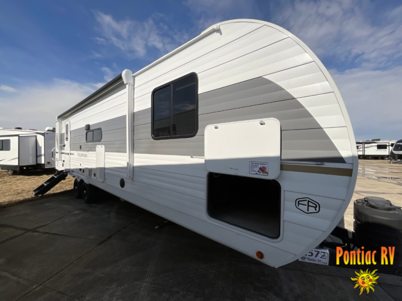 The Wildwood travel trailers are packed with hassle-free camping amenities! There are a variety of floorplans to choose from between three different regions. The heated and enclosed Accessibelly will help protect against the elements and debris during transport, and the exterior retro/metal redesign is sure to be eye-catching! There are stylish roller shades inside, along with updated backsplash, elegant curtain rods and curtains, plus many more interior comforts! Choose a Wildwood travel trailer today for quality and value!