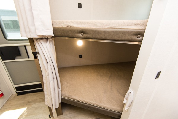 When you're ready to upgrade your RV to a unit with more sleeping space and comfort, choose this Wildwood travel trailer, and you'll never look back. After setting up camp, put out the large slide and prepare lunch indoors or outside at the outdoor kitchen, and the 20' power awning will shade you from the sun. The kids will find all their snacks in the hidden pantry behind the entertainment center, and their drinks in the oversized fridge. There is a Versa-Lounge to relax on and a Versa Flex table where you can dine and work from home. This model features a rear private bunkhouse with a set of double bed bunks, a desk and a half bath. You will also love the front private bedroom that includes a custom king bed with Versa-Tilt and dual bedside closets with nightstands below.