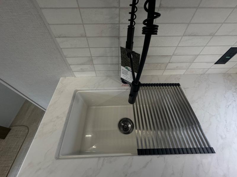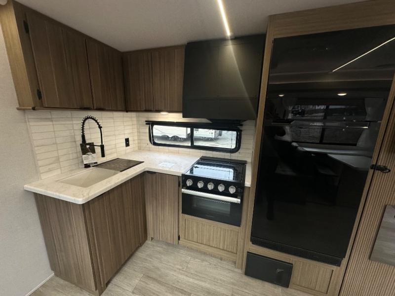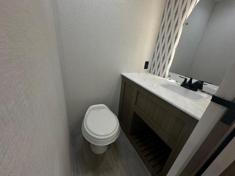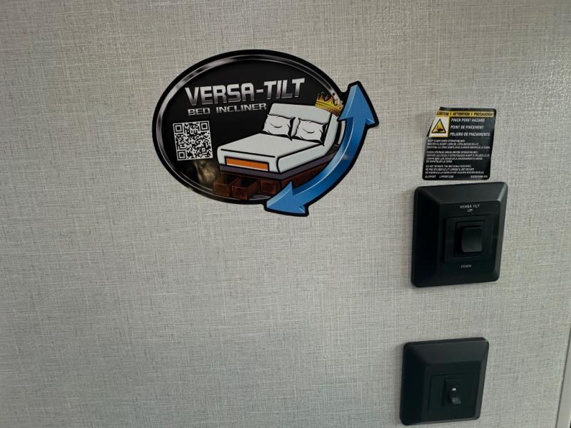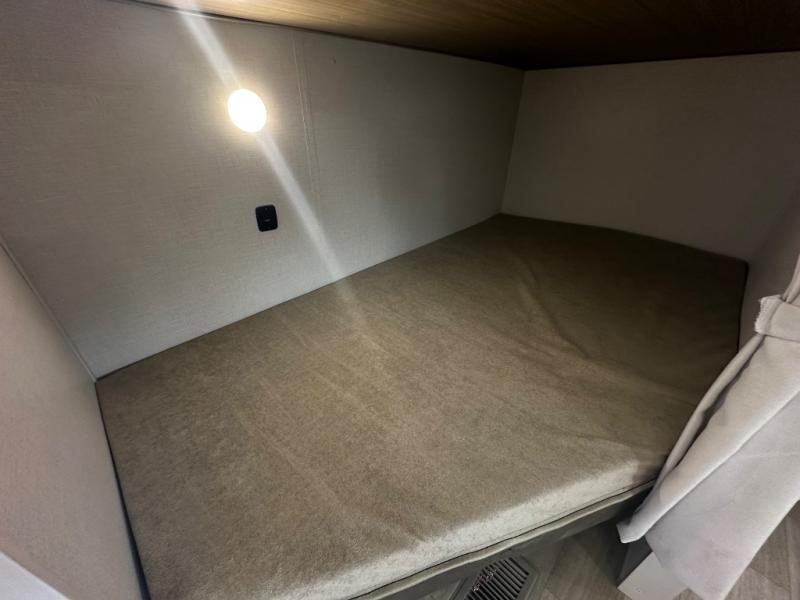 When you're ready to upgrade your RV to a unit with more sleeping space and comfort, choose this Wildwood travel trailer, and you'll never look back. After setting up camp, put out the large slide and prepare lunch indoors or outside at the outdoor kitchen, and the 20' power awning will shade you from the sun. The kids will find all their snacks in the hidden pantry behind the entertainment center, and their drinks in the oversized fridge. There is a Versa-Lounge to relax on and a Versa Flex table where you can dine and work from home. This model features a rear private bunkhouse with a set of double bed bunks, a desk and a half bath. You will also love the front private bedroom that includes a custom king bed with Versa-Tilt and dual bedside closets with nightstands below.