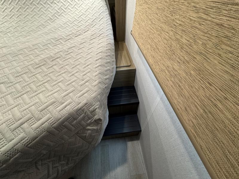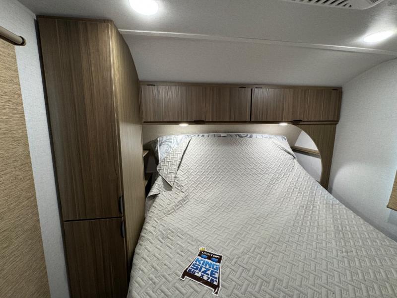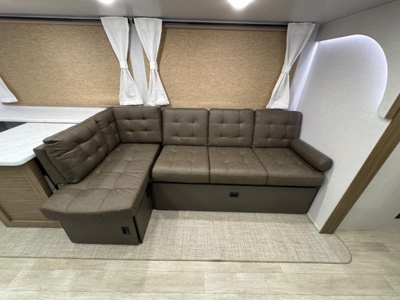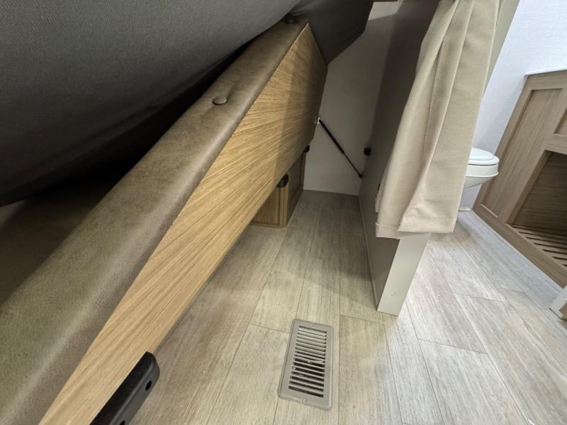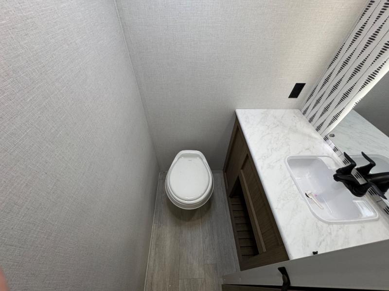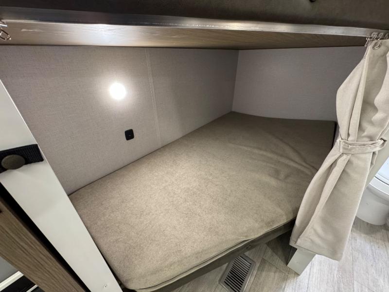 When you're ready to upgrade your RV to a unit with more sleeping space and comfort, choose this Wildwood travel trailer, and you'll never look back. After setting up camp, put out the large slide and prepare lunch indoors or outside at the outdoor kitchen, and the 20' power awning will shade you from the sun. The kids will find all their snacks in the hidden pantry behind the entertainment center, and their drinks in the oversized fridge. There is a Versa-Lounge to relax on and a Versa Flex table where you can dine and work from home. This model features a rear private bunkhouse with a set of double bed bunks, a desk and a half bath. You will also love the front private bedroom that includes a custom king bed with Versa-Tilt and dual bedside closets with nightstands below.
