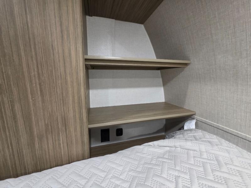 When you're ready to upgrade your RV to a unit with more sleeping space and comfort, choose this Wildwood Platinum travel trailer, and you'll never look back. After setting up camp, put out the large slide and prepare lunch indoors or outside at the outdoor kitchen, and the 20' power awning will shade you from the sun. The kids will find all their snacks in the hidden pantry behind the entertainment center, and their drinks in the oversized fridge. The U-shaped dinette is a part of the Versa Lounge, and it will provide comfortable seating space. This model features a rear private bunkhouse with a set of double bed bunks, a desk and a half bath. You will also love the front private bedroom that includes a custom king bed and dual bedside closets with nightstands below.