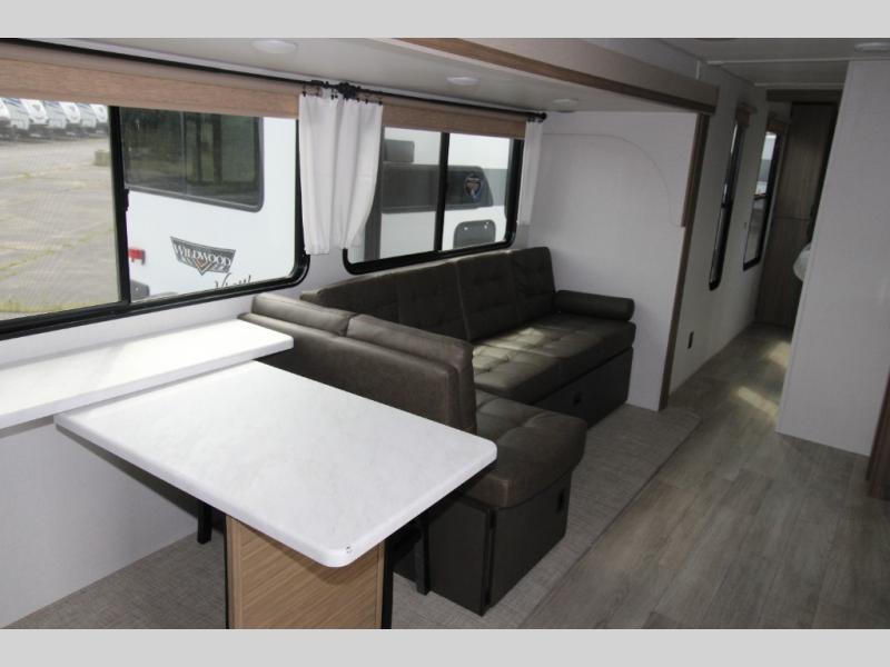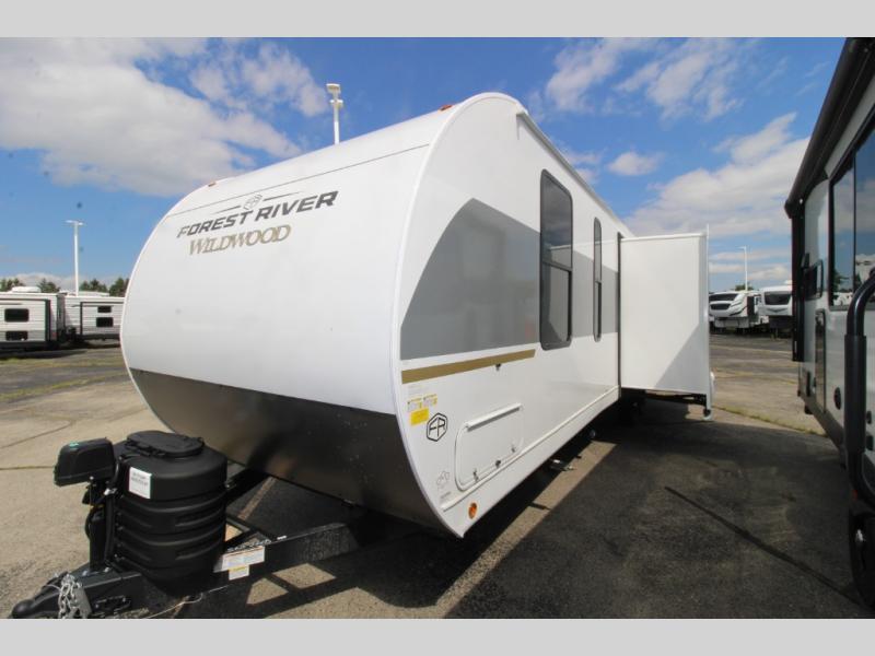 Enjoy years and years of memories with any one of these Forest River Wildwood travel trailers! They are built with a Dicor PVC roof membrane, a powder coated I-beam frame, and an aerodynamic front radius profile for an easier tow. The triple seal slide out system prevents water from seeping inside and keeps it outside where it belongs. The Best In Class Value Package includes upgraded designer furniture, seamless countertops with no T-mold, and two zone residential soundbars with FM, Bluetooth, HDMI and USB. You will also appreciate the heated and enclosed Accessi-Belly with removable underbelly panels, the power tongue jack with an LED light, and the designated CPAP storage. Some new upgraded features include: an upgraded slide-out fascia, a Versa-Tilt bed, an upgraded shower head, and a 60K BTU tankless water heater, and so much more!