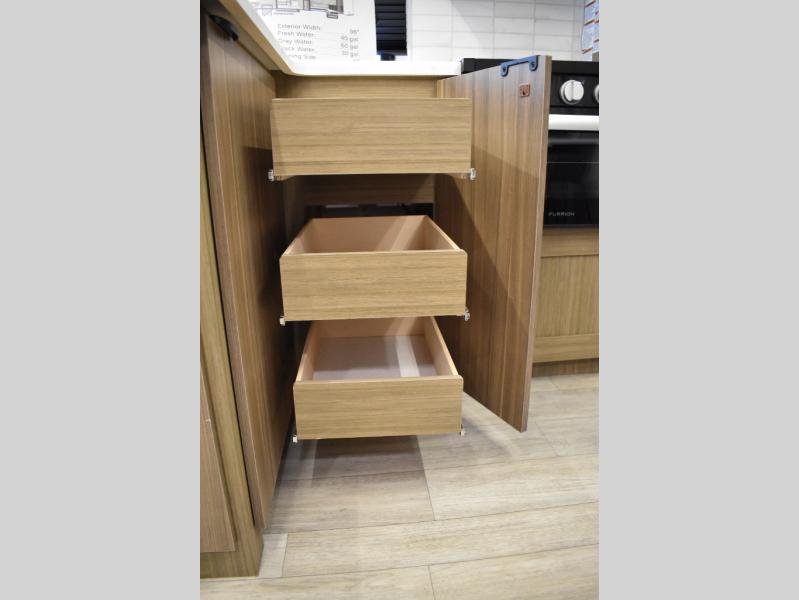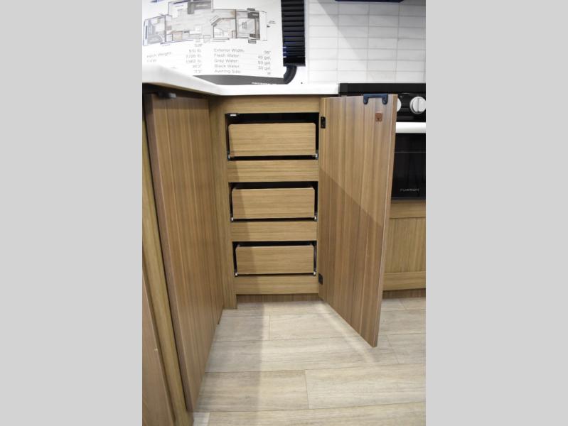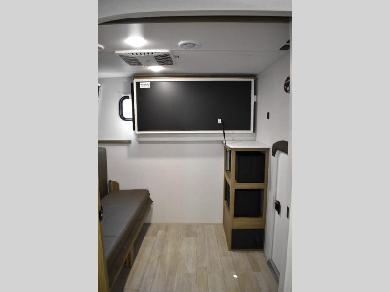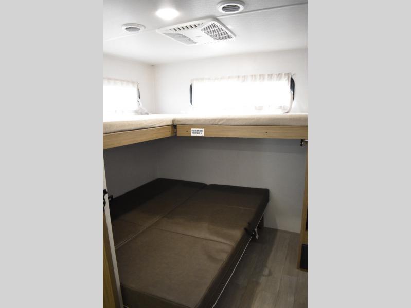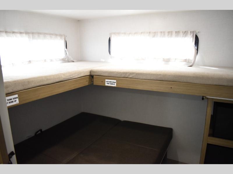 When you're ready to upgrade your RV to a unit with more sleeping space and comfort, choose this Wildwood travel trailer, and you'll never look back. After setting up camp, put out the large slide and prepare lunch indoors or outside at the exterior camp kitchen, and the 18' power awning will shade you from the sun. The kids will find all their snacks in the walk-in pantry, and they can grab a cold drink from the refrigerator. The Versa-Lounge and Versa Flex table offer plenty of seating, dining, and sleeping space. This model features a rear private bunkhouse with a Versa queen bed and two Versa bunks, and you will love the front private bedroom that includes a custom king bed with Versa-Tilt and dual bedside closets.