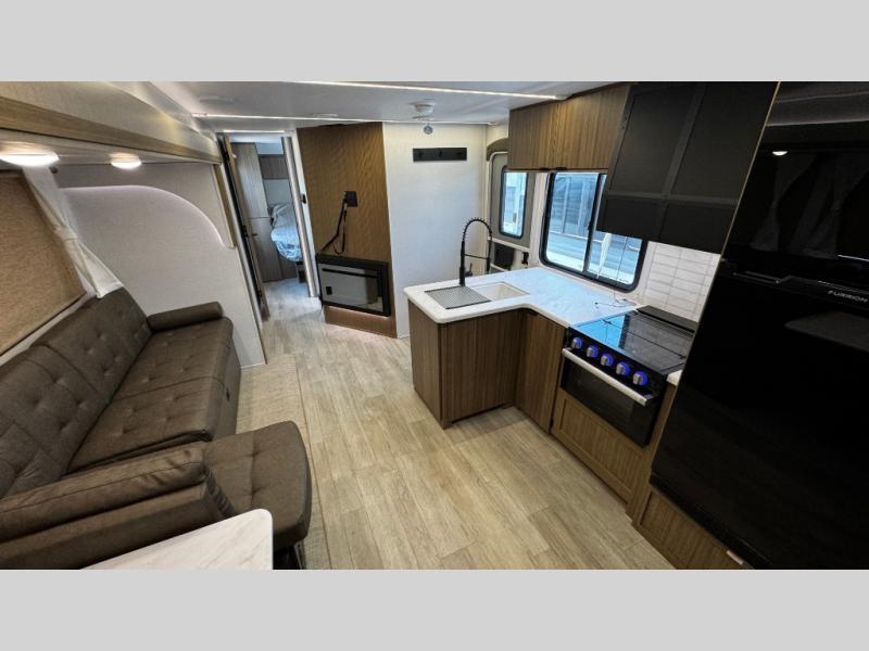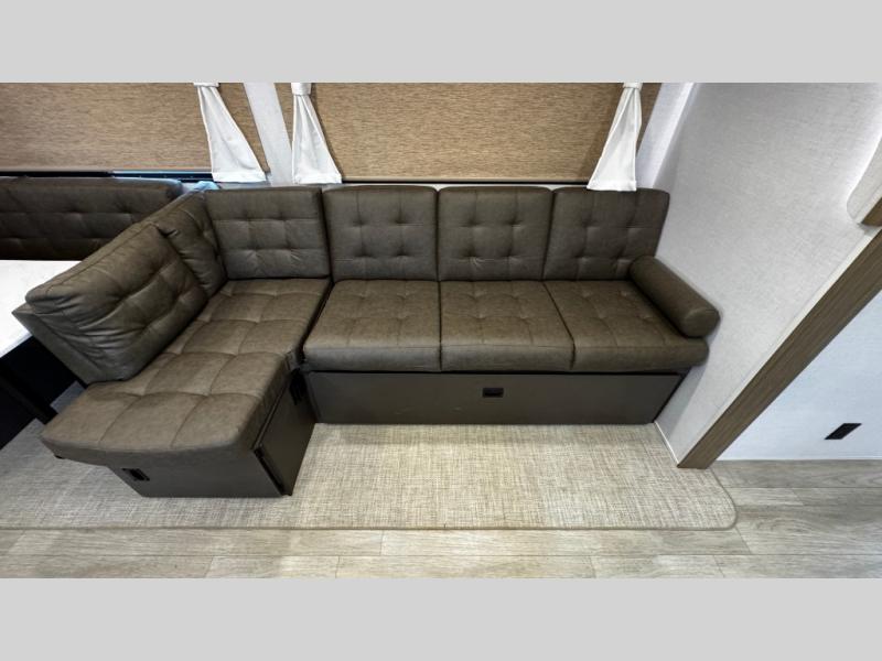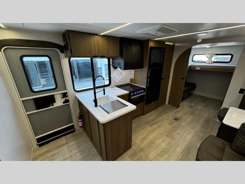 When you're ready to upgrade your RV to a unit with more sleeping space and comfort, choose this Wildwood travel trailer, and you'll never look back. After setting up camp, put out the large slide and prepare lunch indoors or outside at the exterior camp kitchen, and the 18' power awning will shade you from the sun. The kids will find all their snacks in the walk-in pantry, and they can grab a cold drink from the refrigerator. The Versa-Lounge and Versa Flex table offer plenty of seating, dining, and sleeping space. This model features a rear private bunkhouse with a Versa queen bed and two Versa bunks, and you will love the front private bedroom that includes a custom king bed with Versa-Tilt and dual bedside closets.