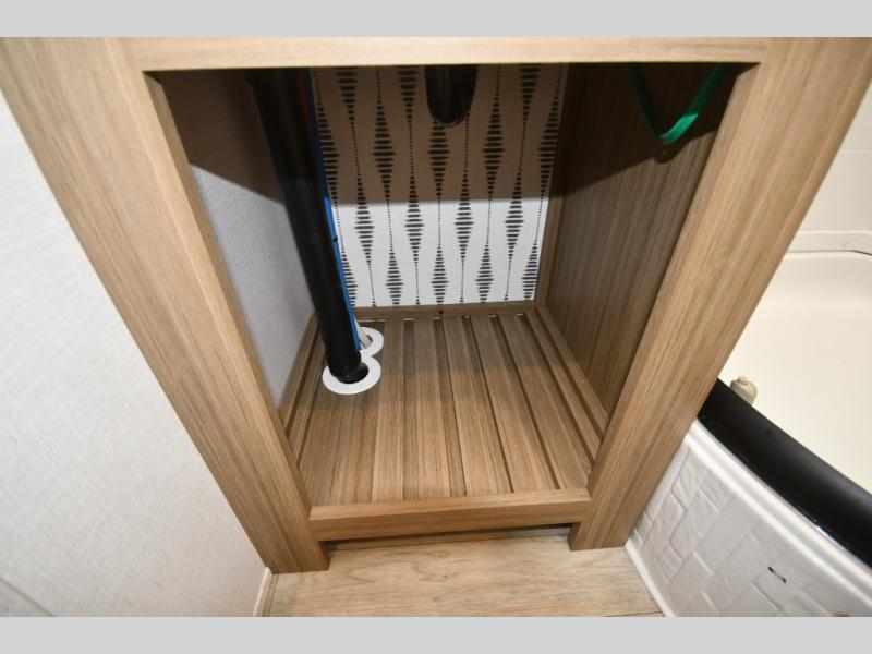 The large pass-through storage compartment provides ample space for outdoor chairs, travel gear, fishing equipment, and road trip essentials. With additional exterior storage and convenient hookups, you’re always prepared for the next destination.