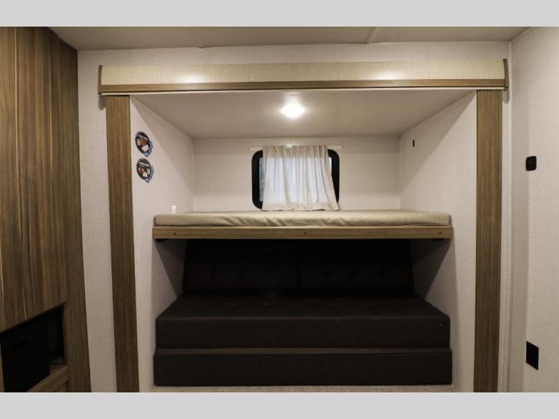 What I liked most: We enjoy the roominess of interior, bunkroom large open area has lots of options available for usage and like having solid privacy doors for both bed areas, but favorite part is the large out side kitchen.
