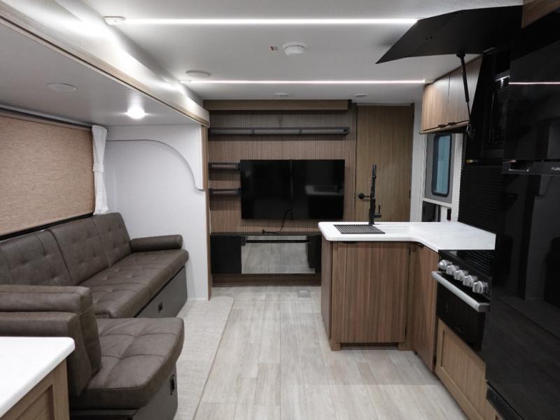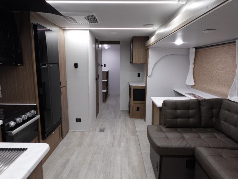 The Wildwood travel trailers are packed with hassle-free camping amenities! The heated and enclosed Accessibelly will help protect against the elements and debris during transport, and the exterior retro/metal redesign is sure to be eye-catching! There are stylish roller shades inside, along with updated backsplash, elegant curtain rods and curtains, plus many more interior comforts! Choose a Wildwood travel trailer today for quality and value!
