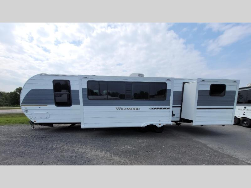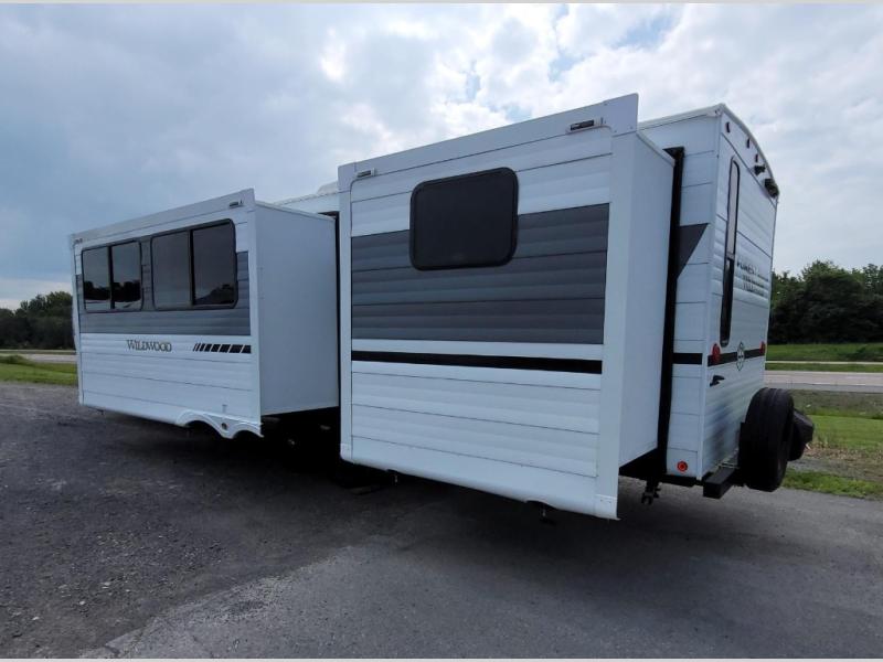 The Wildwood travel trailers are packed with hassle-free camping amenities! There are a variety of floorplans to choose from between three different regions. The heated and enclosed Accessibelly will help protect against the elements and debris during transport, and the exterior retro/metal redesign is sure to be eye-catching! There are stylish roller shades inside, along with updated backsplash, elegant curtain rods and curtains, plus many more interior comforts! Choose a Wildwood travel trailer today for quality and value!