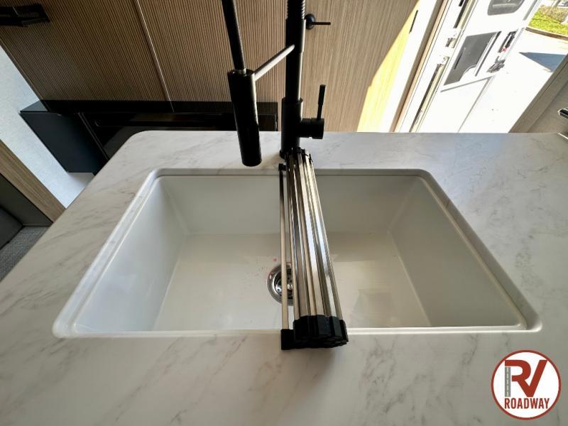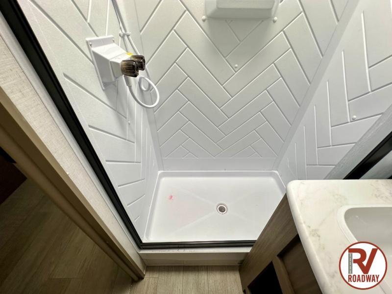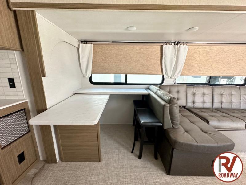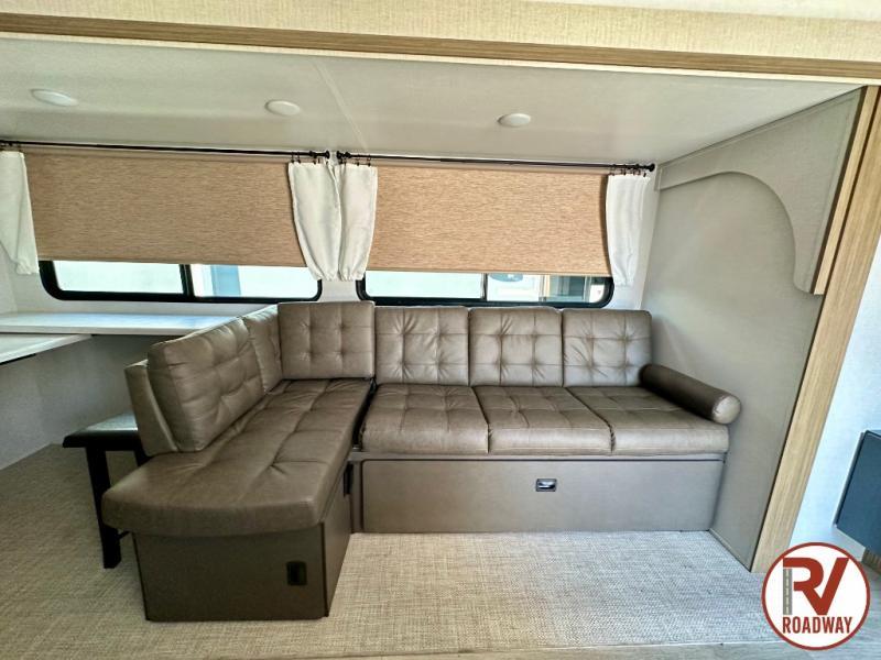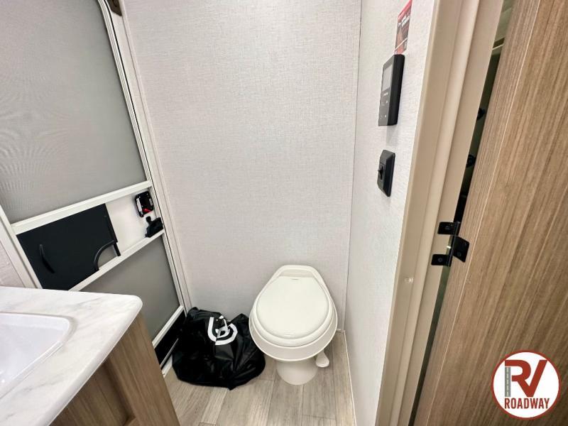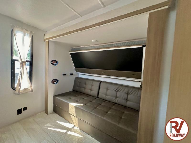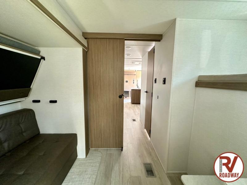 Get ready for your next weekend getaway to your local state park with this double-slide Wildwood travel trailer. The private bunkhouse is perfect for the kids, and you can enjoy the front private bedroom with a custom king bed with Versa-Tilt. This unit also includes a Versa Lounge and Versa Flex table for relaxing, dining, and sleeping. The double-bowl sink is perfect for cleaning up afterward, and you'll love how convenient the full bath is with its own exterior entry door.