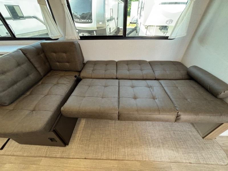 The Wildwood travel trailers are packed with hassle-free camping amenities! There are a variety of floorplans to choose from between three different regions. The heated and enclosed Accessibelly will help protect against the elements and debris during transport, and the exterior retro/metal redesign is sure to be eye-catching! There are stylish roller shades inside, along with updated backsplash, elegant curtain rods and curtains, plus many more interior comforts! Choose a Wildwood travel trailer today for quality and value!
