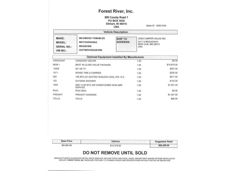 Forest River Wildwood travel trailer 32VERANDA highlights: