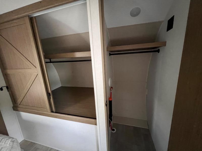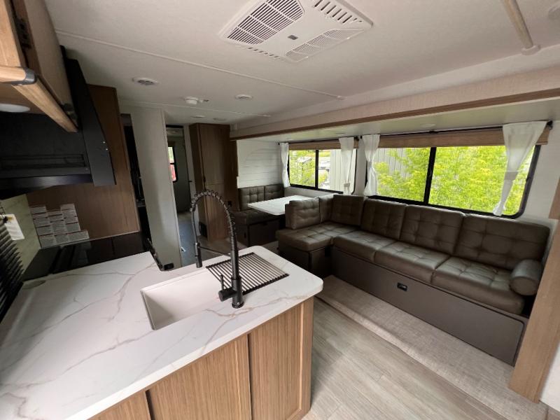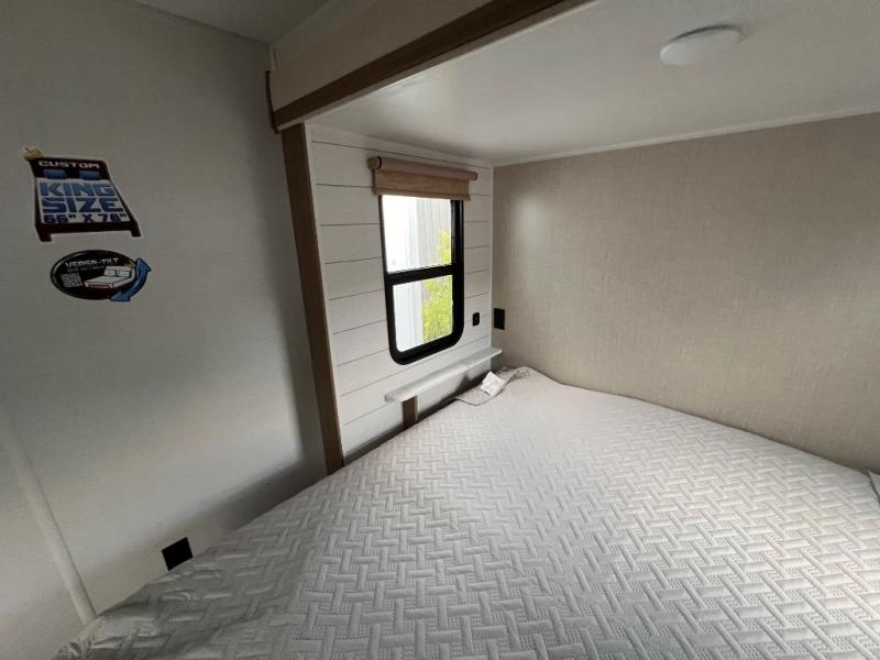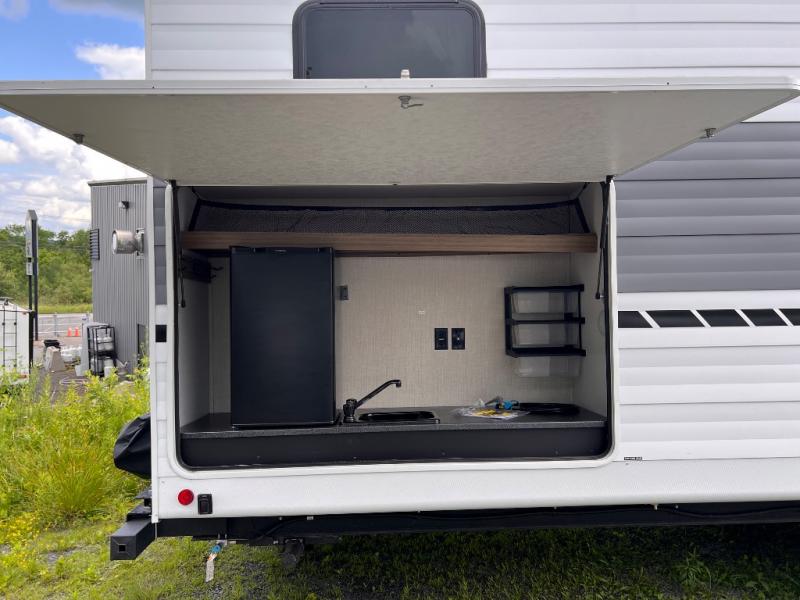 Have you been searching for the perfect travel trailer for your family? This Wildwood might just be the RV you have been looking for. Just imagine hiking, biking and playing horse shoes at your favorite campground to return to plenty of space for everything thanks to the triple slides, one in each room. The kiddos will surely head to the rear private bunkhouse to claim a bunk bed while you take a nap on the custom king bed in the front bedroom. You can make dinner on the outside kitchen or in the full kitchen inside. Everyone can play games or relax on the Versa Lounge before heading outside to see the stars. Check it out!