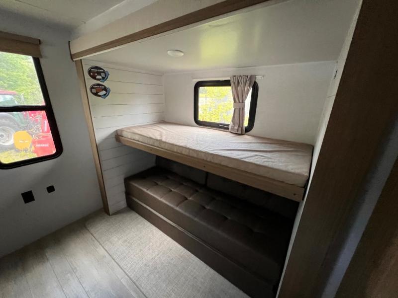 The Wildwood travel trailers are packed with hassle-free camping amenities! There are a variety of floorplans to choose from between three different regions. The heated and enclosed Accessibelly will help protect against the elements and debris during transport, and the exterior retro/metal redesign is sure to be eye-catching! There are stylish roller shades inside, along with updated backsplash, elegant curtain rods and curtains, plus many more interior comforts! Choose a Wildwood travel trailer today for quality and value!