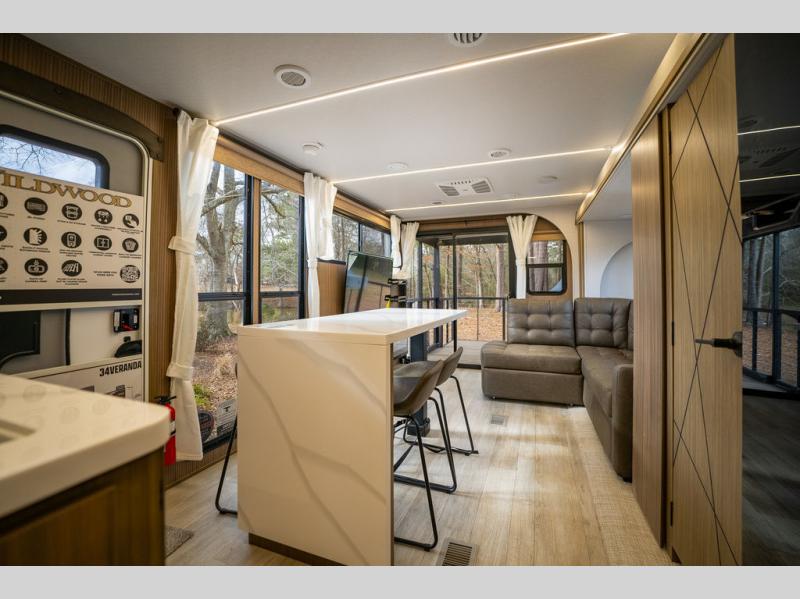 Experience luxury on the road with the 2025 Forest River Wildwood 34Veranda — where spacious design, modern amenities, and the exclusive full-length veranda deck redefine what it means to travel in style.