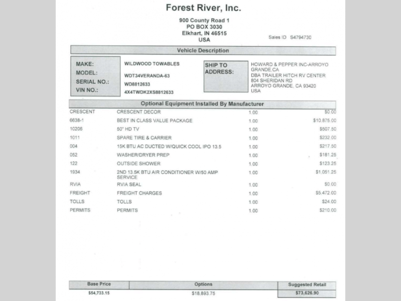 Forest River Wildwood travel trailer 34VERANDA highlights: