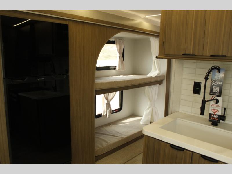 The Wildwood travel trailers are packed with hassle-free camping amenities! There are a variety of floorplans to choose from between three different regions. The heated and enclosed Accessibelly will help protect against the elements and debris during transport, and the exterior retro/metal redesign is sure to be eye-catching! There are stylish roller shades inside, along with updated backsplash, elegant curtain rods and curtains, plus many more interior comforts! Choose a Wildwood travel trailer today for quality and value!