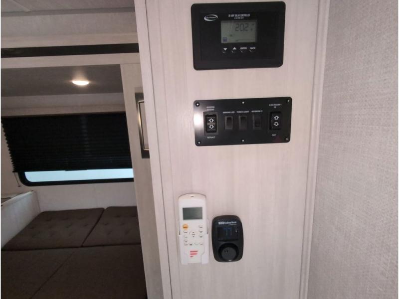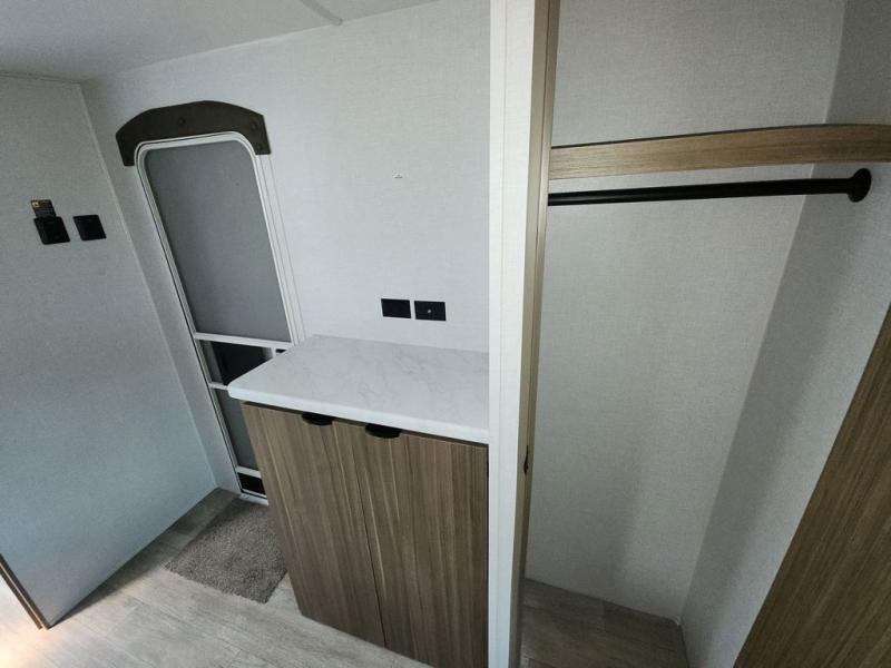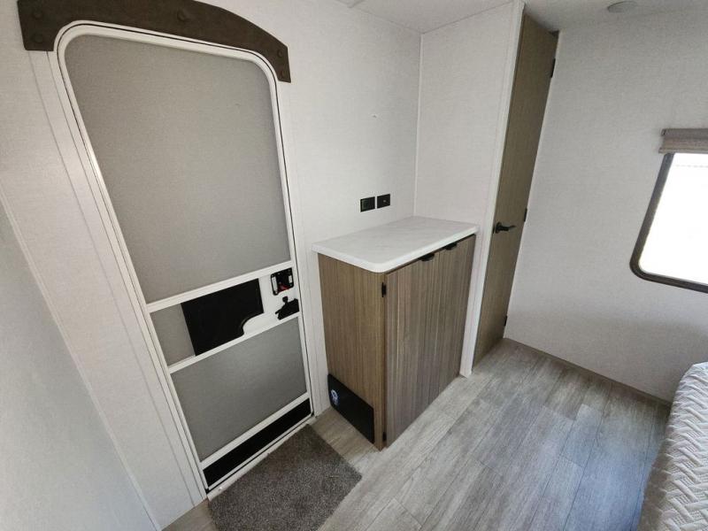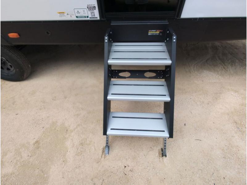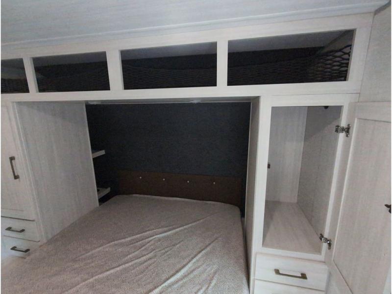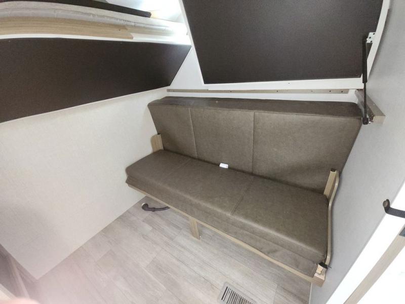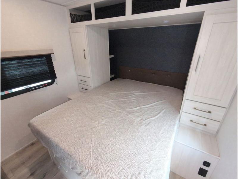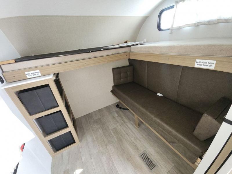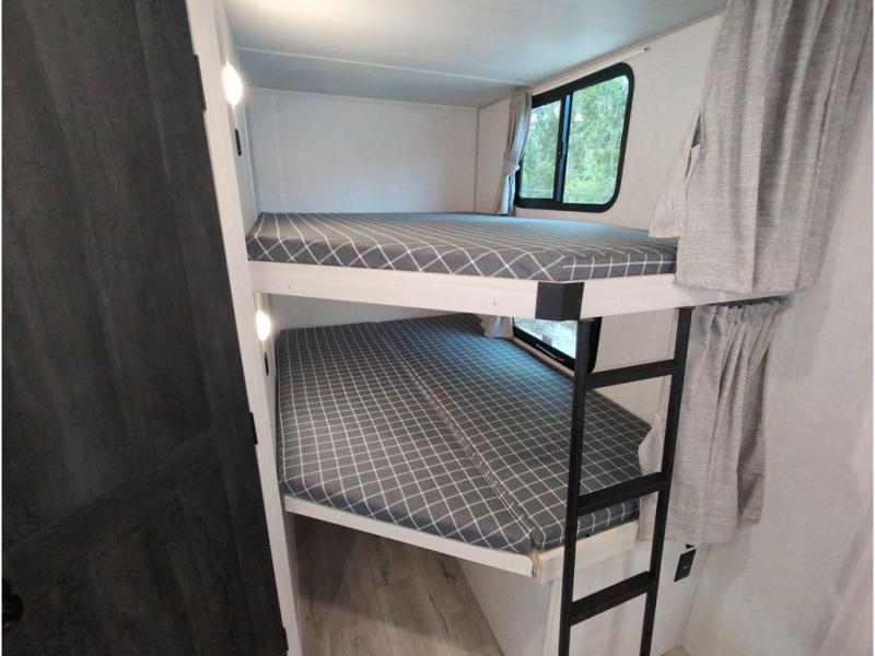 You're going to love this Wildwood travel trailer and its unique layout. The private bunkhouse is up front, and the private bedroom is at the rear of the unit. You will love the walk-through bath that leads into the bedroom, and the custom king bed with Versa Tilt slide out provides more interior space. The kids will love the front private bunkhouse with its Versa queen bed and Versa bunk beds. This model also includes an 18' awning that will shade you during the day and create an outdoor living space you are sure to love.