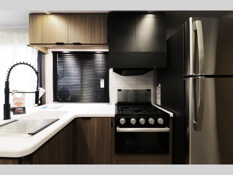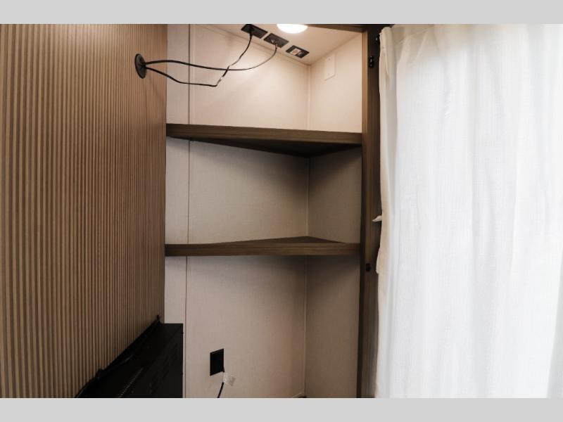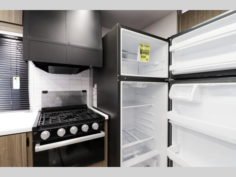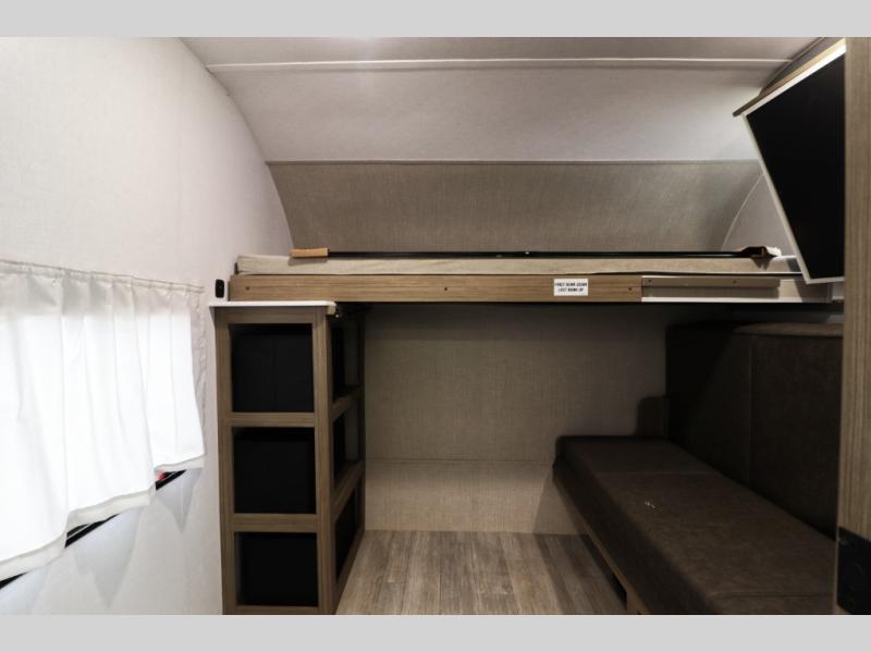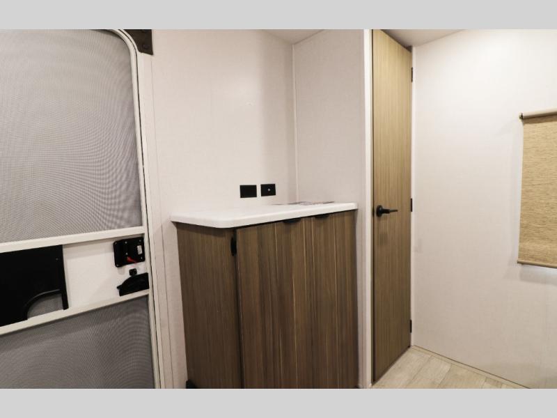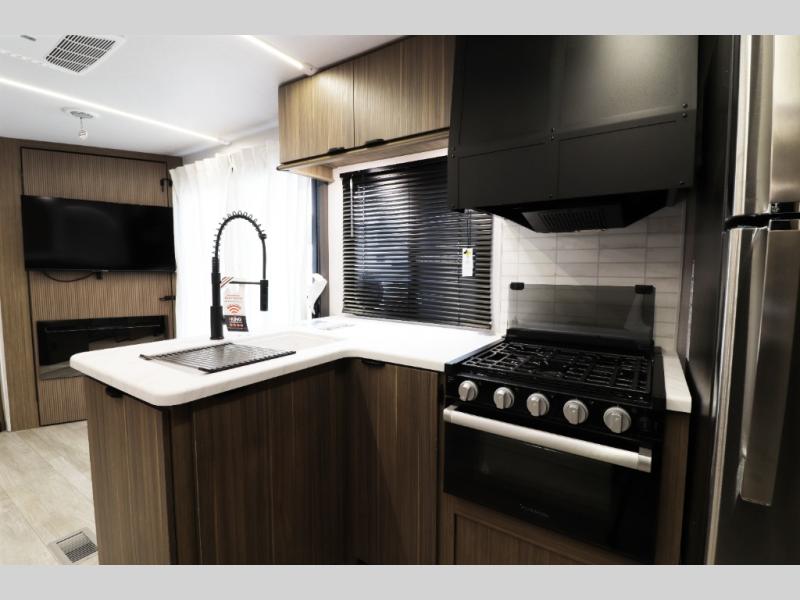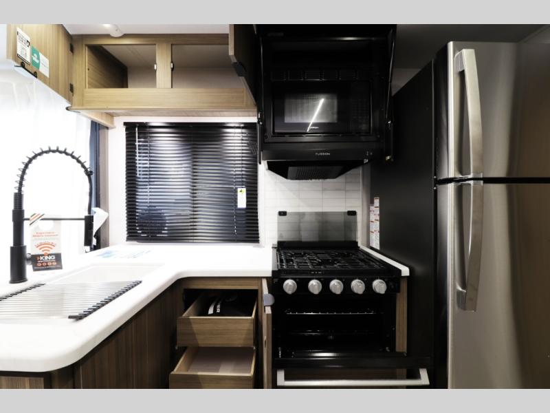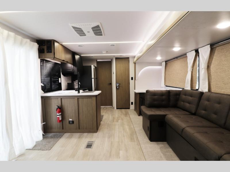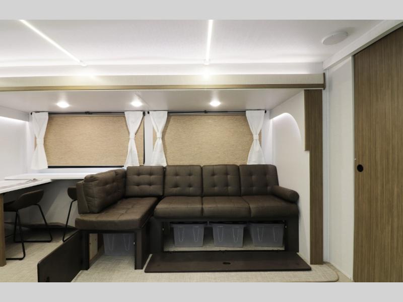 Inside, you’ll love the open-concept living area with the Versa-Lounge and panoramic windows for big campsite views, plus Stow N Go Storage conveniently located under the lounge—ideal for toys, extra bedding, and gear.