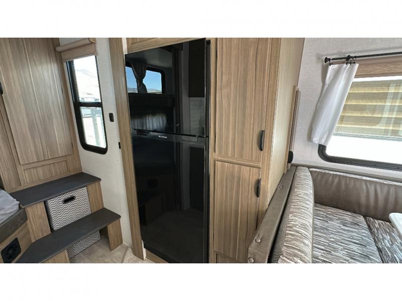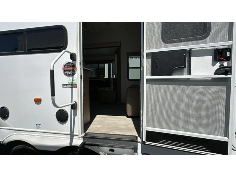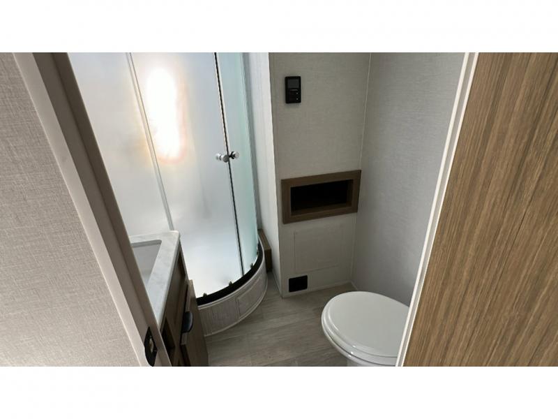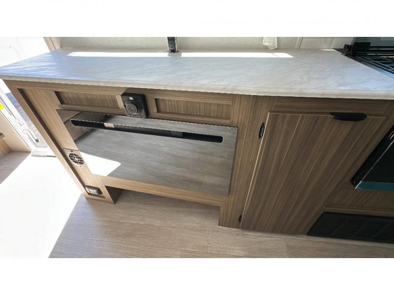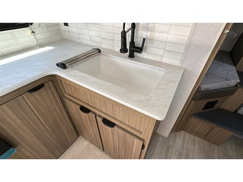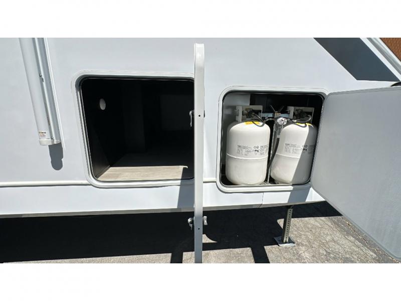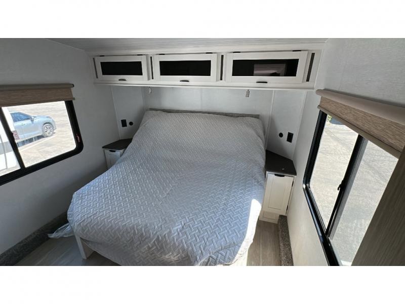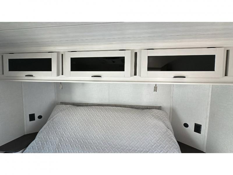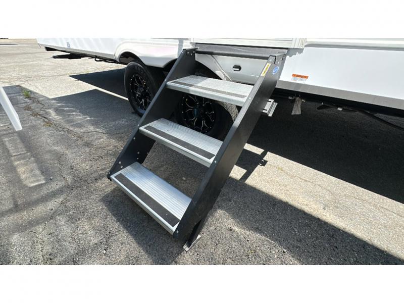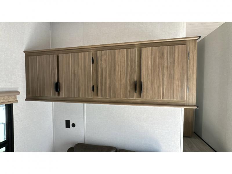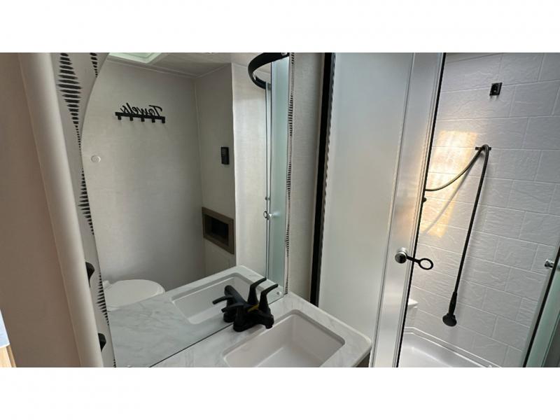 The Wildwood fifth wheels by Forest River feature a wide-body construction and new aluma framed laminated sidewalls for durability, plus rear quick drop stabilizer jacks for easy set up. There are many more new features, including aluminum wheels, heated and enclosed tanks, an LED lighted front cap, and roof ladder prep. The Thermofoil countertops and accent tables inside will make your space feel more like home, and the 60K BTU tankless water heater will provide endless hot showers. These fifth wheels also include a 200W solar panel with a regulator, an LED Smart TV in the living room, outside marine speakers, and an exterior TV backer if you want to add outside entertainment.