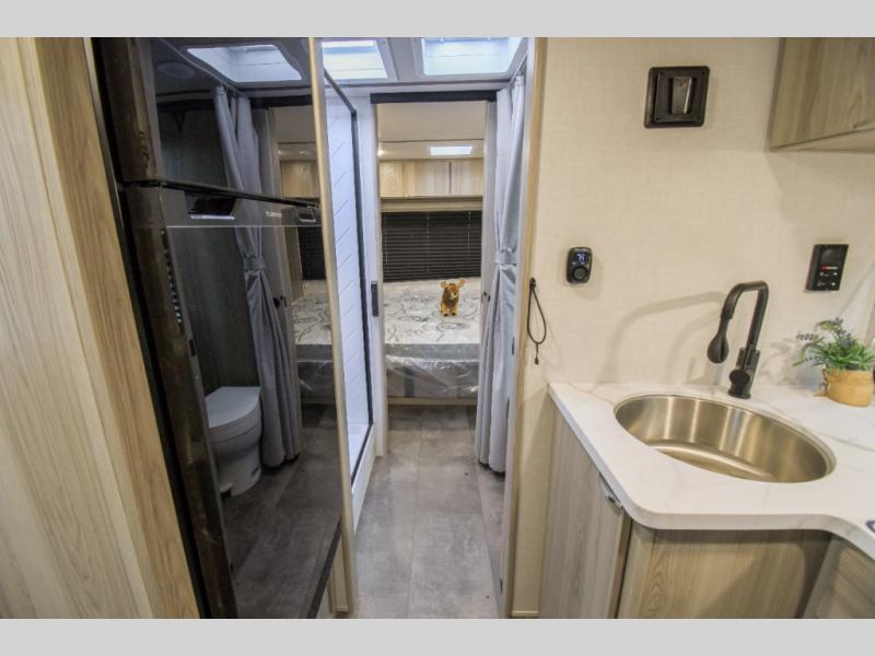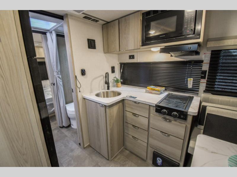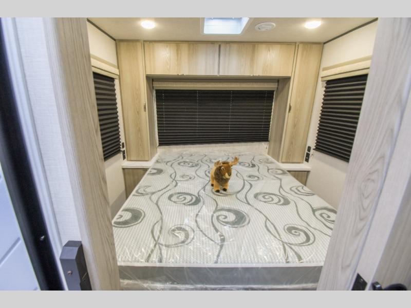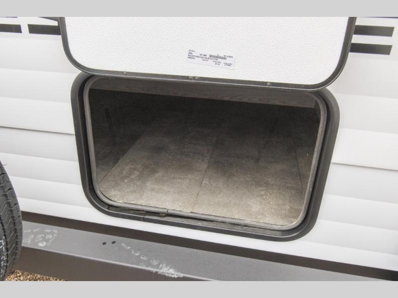 Pack your bags and head to the campground in this cozy travel trailer. Once you arrive you can make lunch on the outside kitchen, and there is a 15' power awning with LED lights to enjoy an outdoor living space. The U-shaped dinette inside will be perfect for meal times and game night, plus this space can double as additional sleeping space if you have guests. There is a separated bath, with the toilet and sink in one room, and the shower across the hall so two people can freshen up at the same. And don't overlook the rear bedroom with a queen bed, dual wardrobes, plus an overhead cabinet for your things.