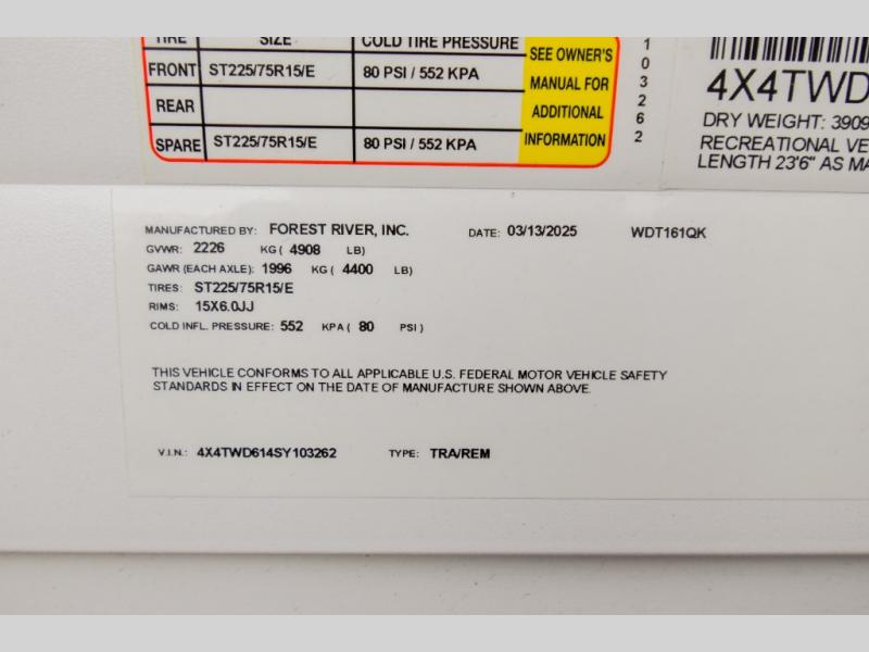 | Awning Info | 15' Power with adjustable legs and LED light strip |