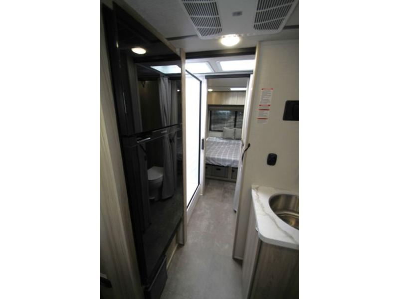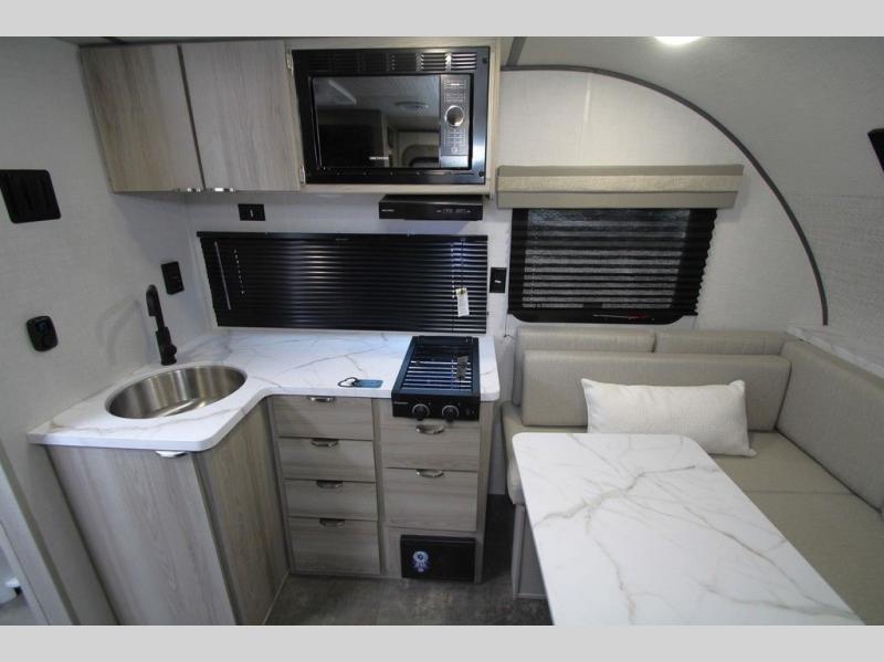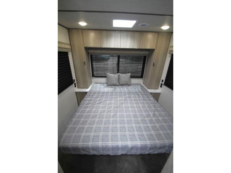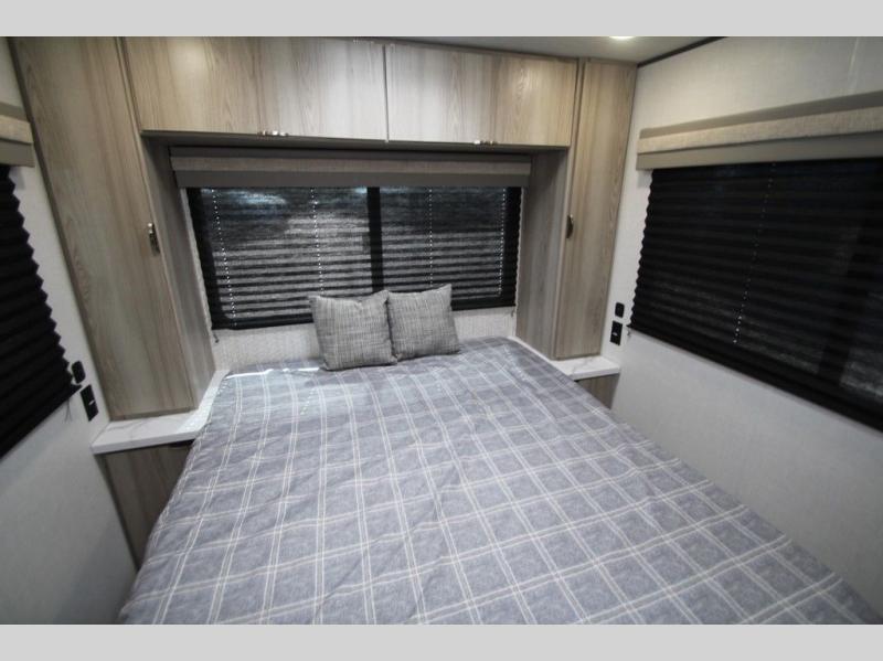 Pack your bags and head to the campground in this cozy travel trailer. Once you arrive you can make lunch on the outside kitchen, and there is a 15' power awning with LED lights to enjoy an outdoor living space. The U-shaped dinette inside will be perfect for meal times and game night, plus this space can double as additional sleeping space if you have guests. There is a separated bath, with the toilet and sink in one room, and the shower across the hall so two people can freshen up at the same. And don't overlook the rear bedroom with a queen bed, dual wardrobes, plus an overhead cabinet for your things.