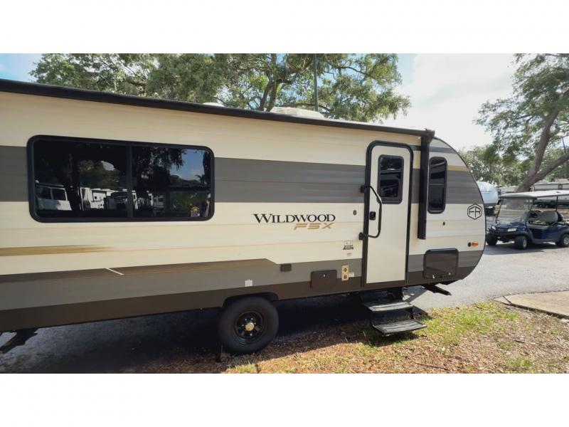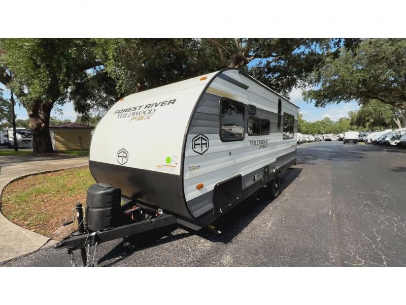 The Forest River Wildwood FSX travel trailer and toy haulers are easy to tow and easy to love, so come take a look! They are constructed with an xtrmPly, one-piece seamless PVC roof membrane, a steel I-beam frame, and diamond plate rock guard for added protection against debris during transport. The Best In Class Value Package includes a 200W expandable roof mount solar panel, a 10' plus cubic refrigerator, a seamless countertop, and an on-demand tankless water heater with active freeze protection to name a few features. The FSX Family Camping Package includes even more hassle-free features, such a, a 13.5 BTU roof mounted A/C, a power vent fan, stabilizer jacks, and more!