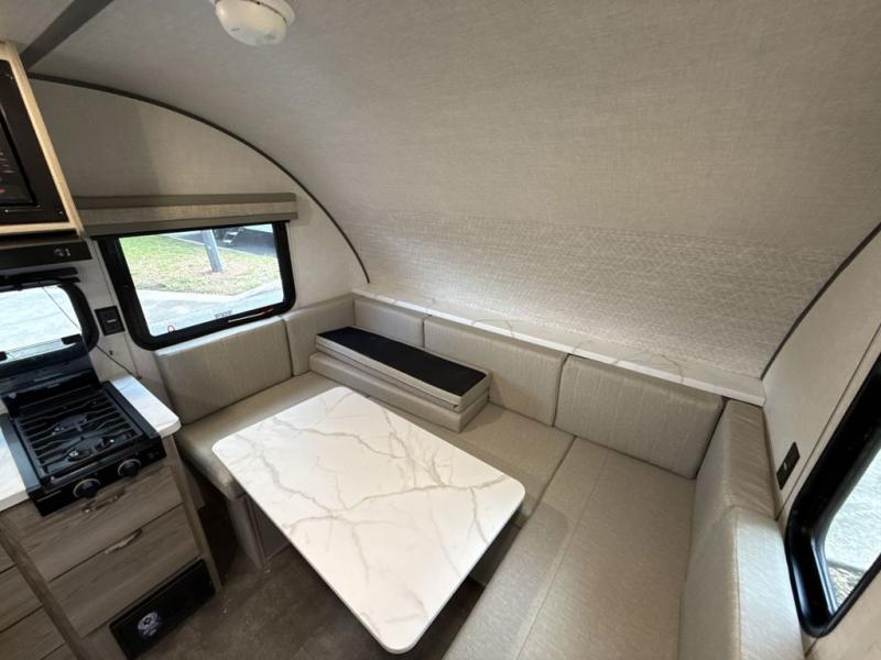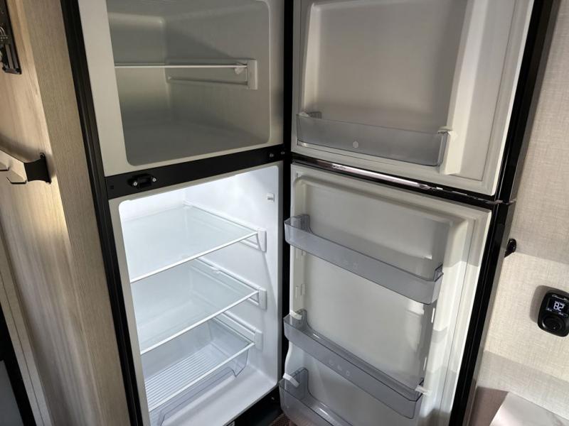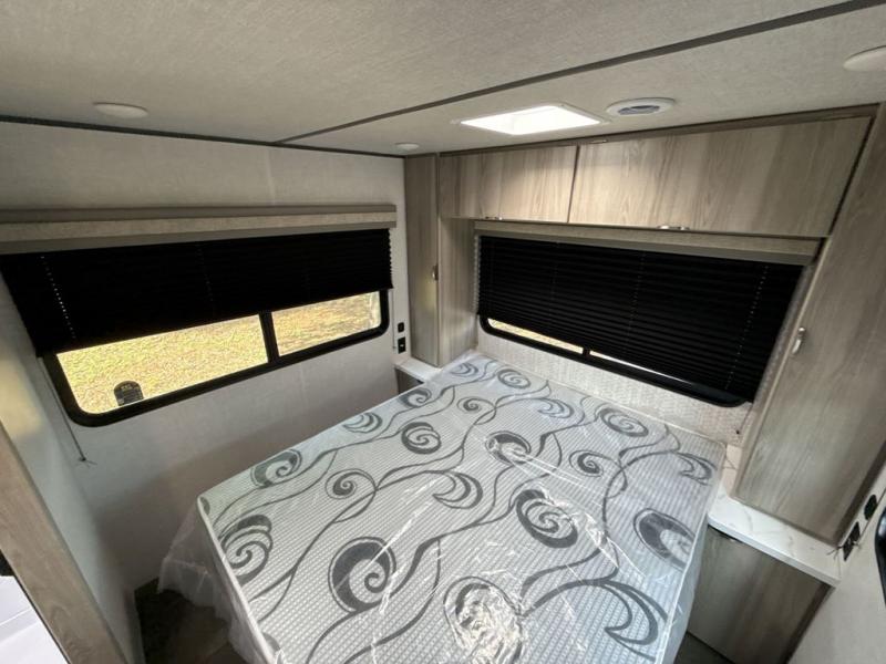 Pack your bags and head to the campground in this cozy travel trailer. Once you arrive you can make lunch on the outside kitchen, and set up the 15' awning. The U-shaped dinette inside will be perfect for meal times and game night, plus this space will convert to a queen-size sleeping space. There is a split-style bath, with the toilet and sink in one room, and the shower across the hall so two people can freshen up at the same. And don't overlook the rear bedroom with a queen bed, dual wardrobes, plus an overhead cabinet with a window below.