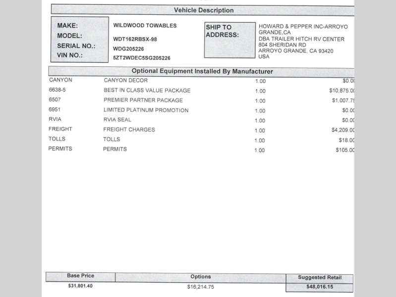 | Awning Info | 15' Power w/Adjustable Legs & LED Light Strip |