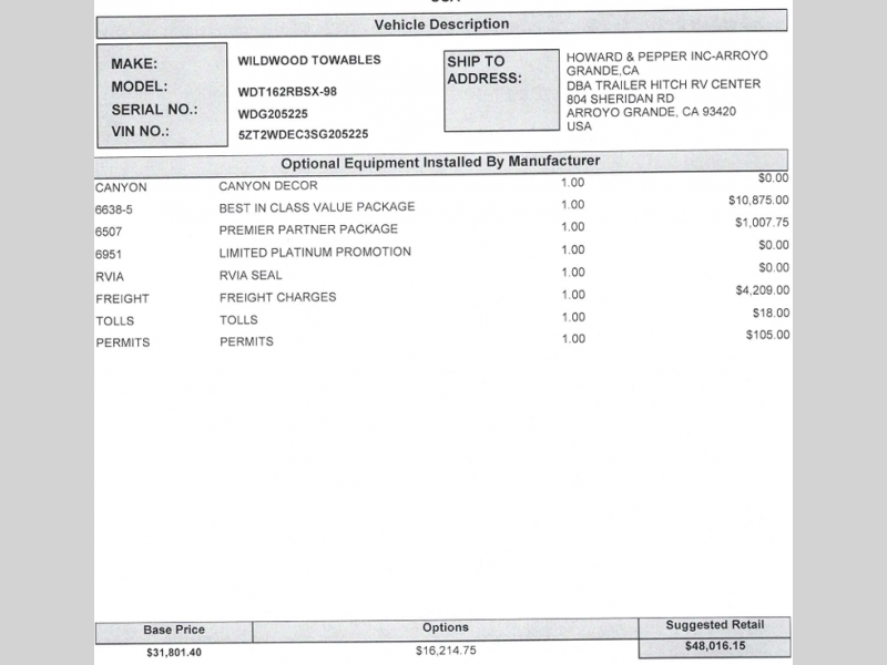 | Awning Info | 15' Power w/Adjustable Legs & LED Light Strip |