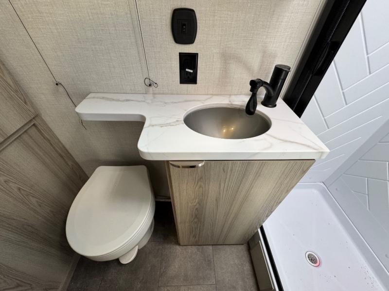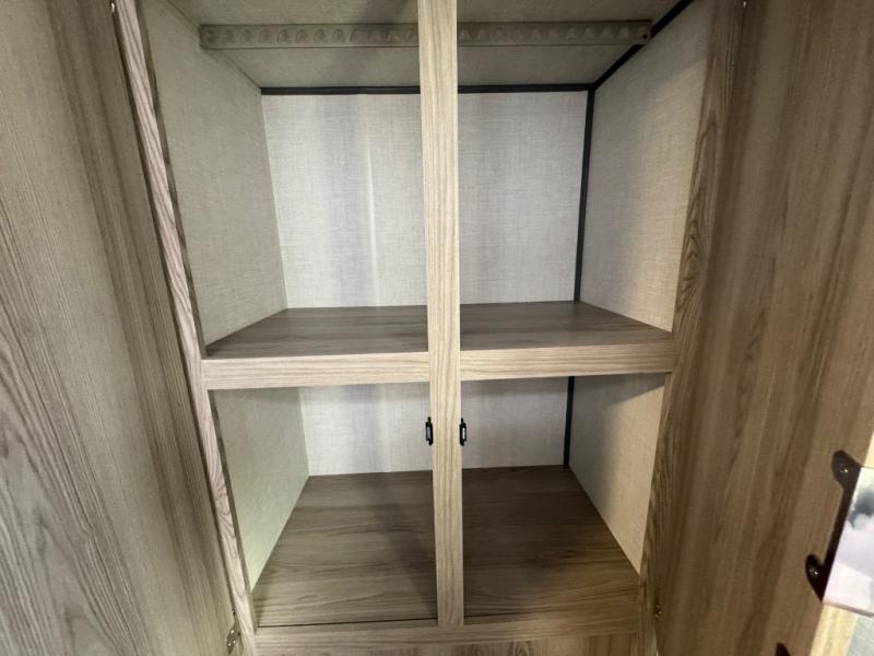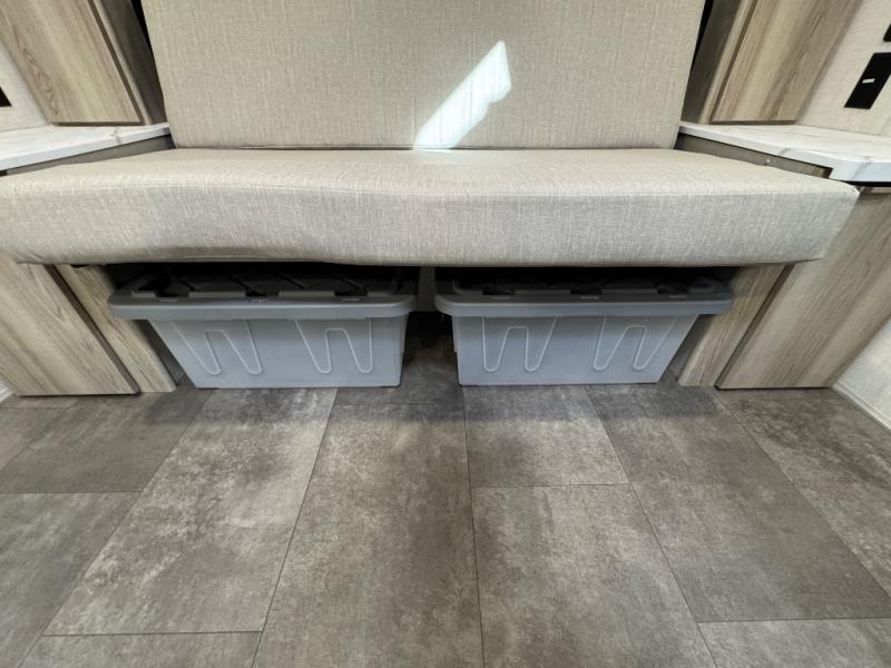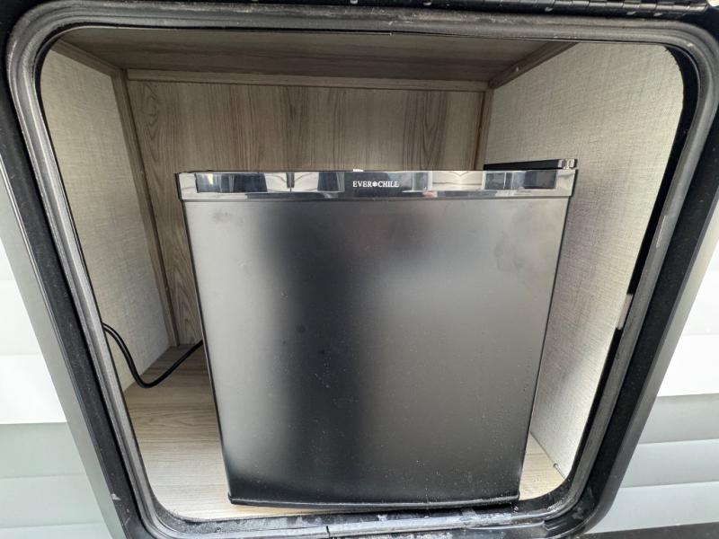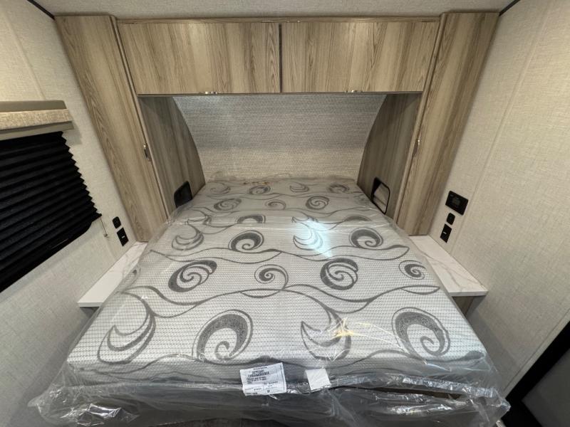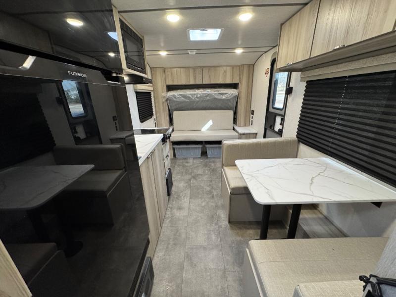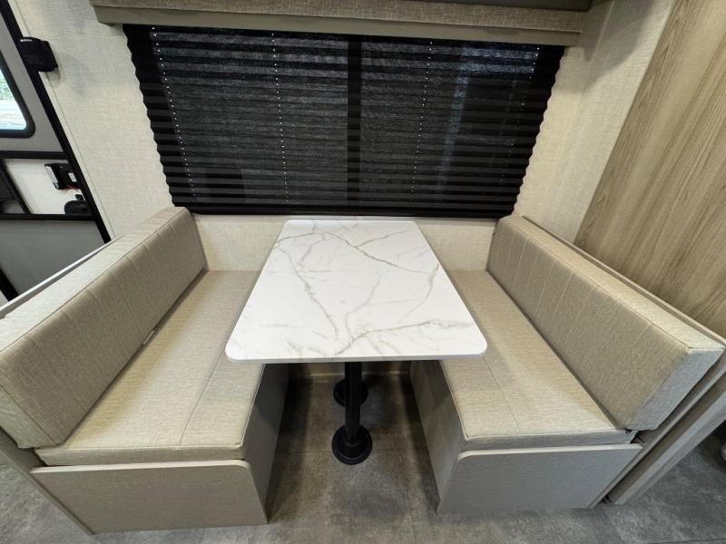 This travel trailer with a full rear bath and versatile sleeping space is your ticket to fun and adventure. While you're putting out the 12' power awning, you can grab the lawn chairs from the full pass-through storage. There is a two burner cooktop and a microwave oven to prepare your meals in, and a booth dinette to dine at. You'll love the RV queen Murphy bed to sleep on at night, and the sofa with storage to relax on during the day!