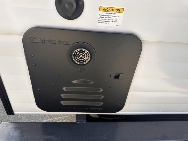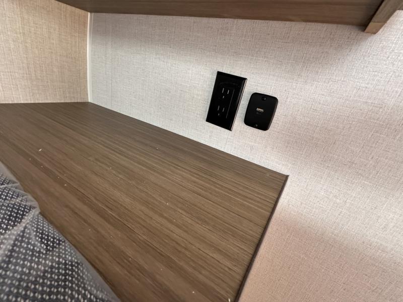 Wherever you decide to camp, this lightweight travel trailer will be perfect for your crew of five to six. There is a front queen bed and bunk beds to sleep on, plus a sofa that can double as seating and sleeping space. The private bath includes a shower and toilet so you don't have to use the camp's facilities at night. A cooktop and microwave oven will let you cook meals each day, and a refrigerator will keep cold items fresh. Outside, you'll enjoy the power awning with an LED light strip and the oversized door for storage access!